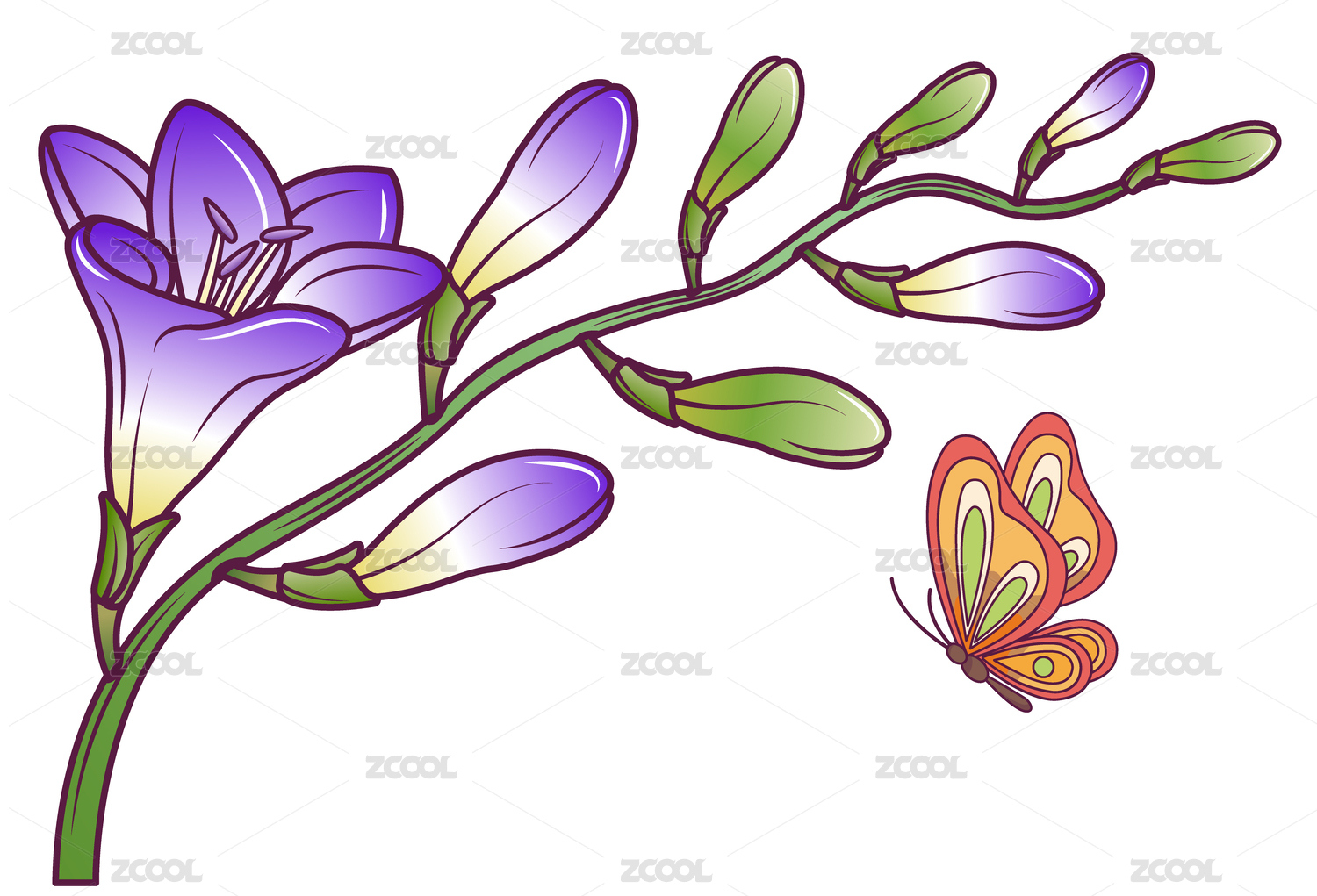 香雪兰鲜花插画卡通花卉