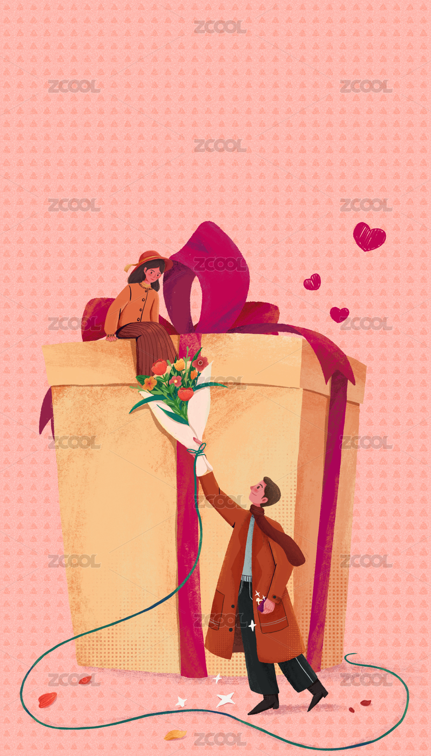 情侣情人节送礼物鲜花插画