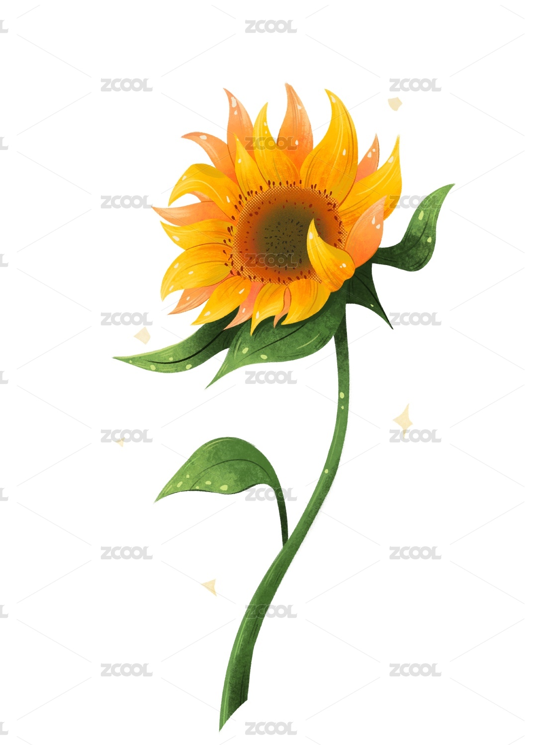 手绘肌理向日葵鲜花插画