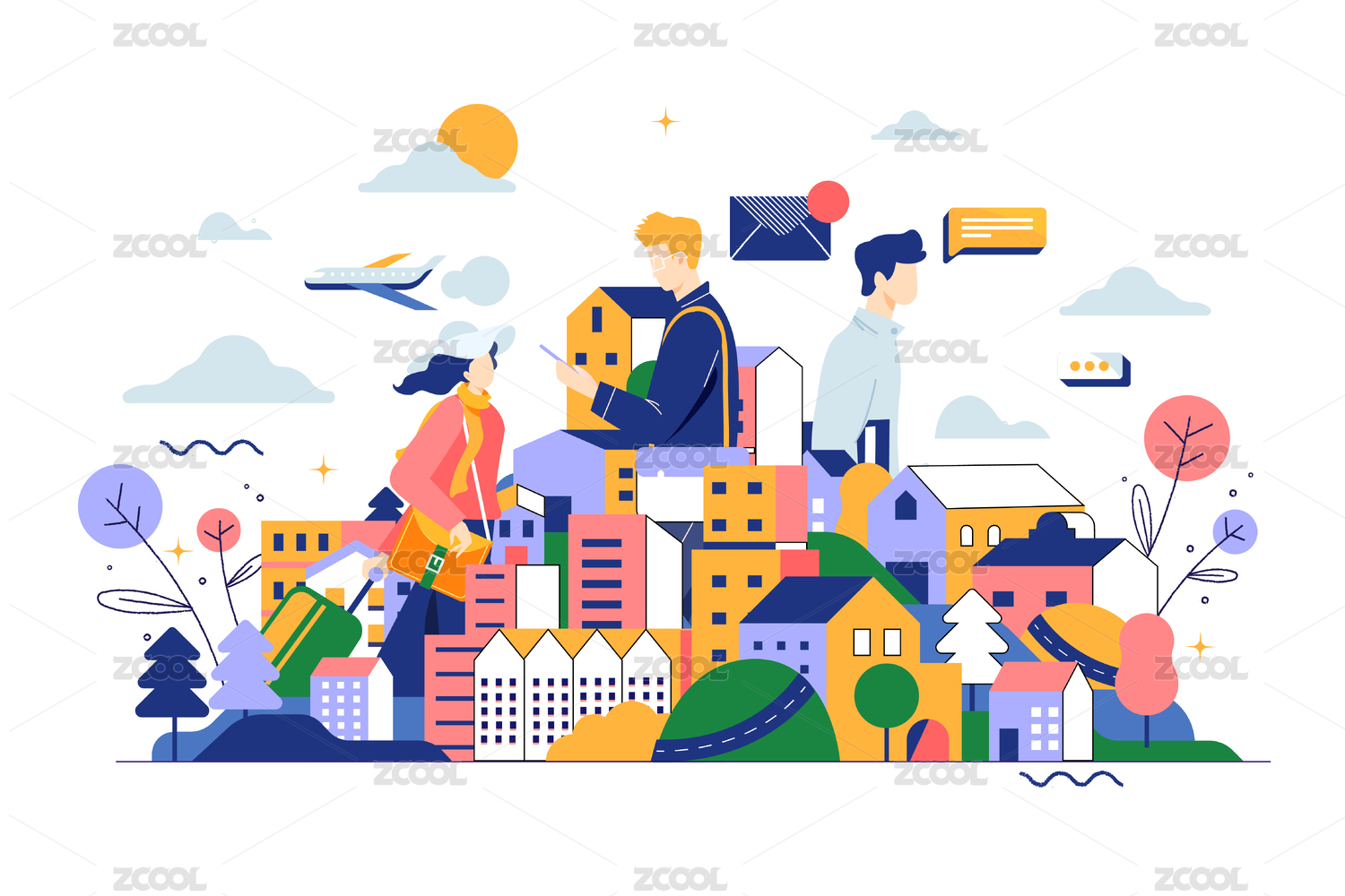 出行青年生活方式矢量插画