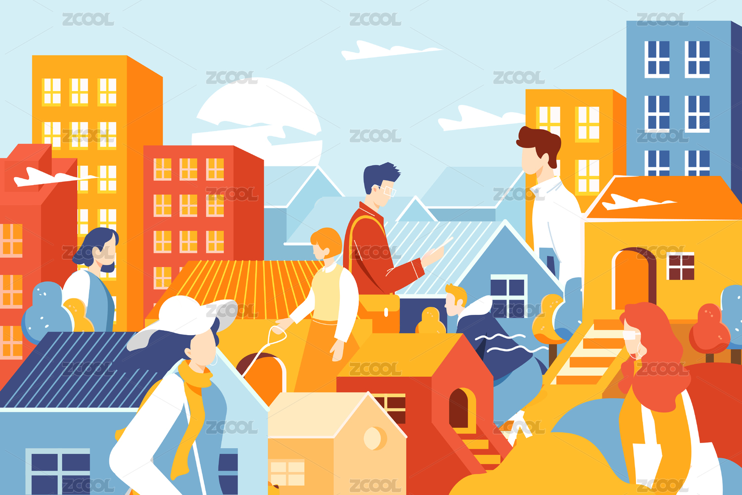 城市青年生活矢量插画