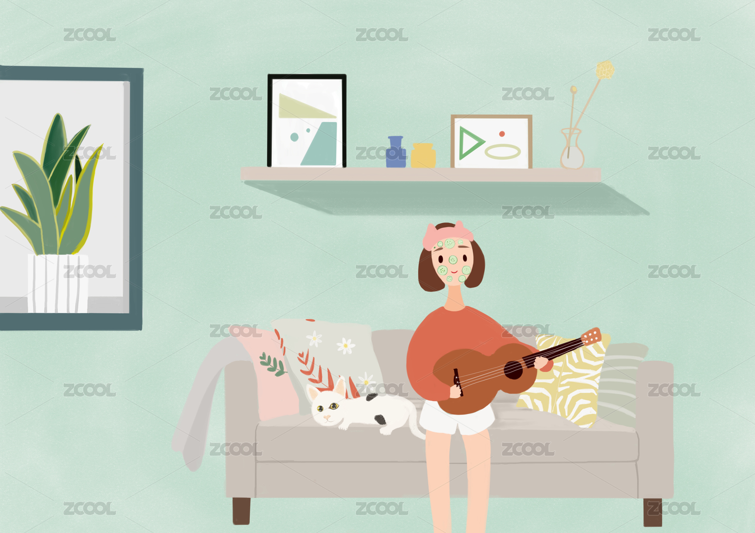 彩色插画年轻人潮流娱乐办公生活