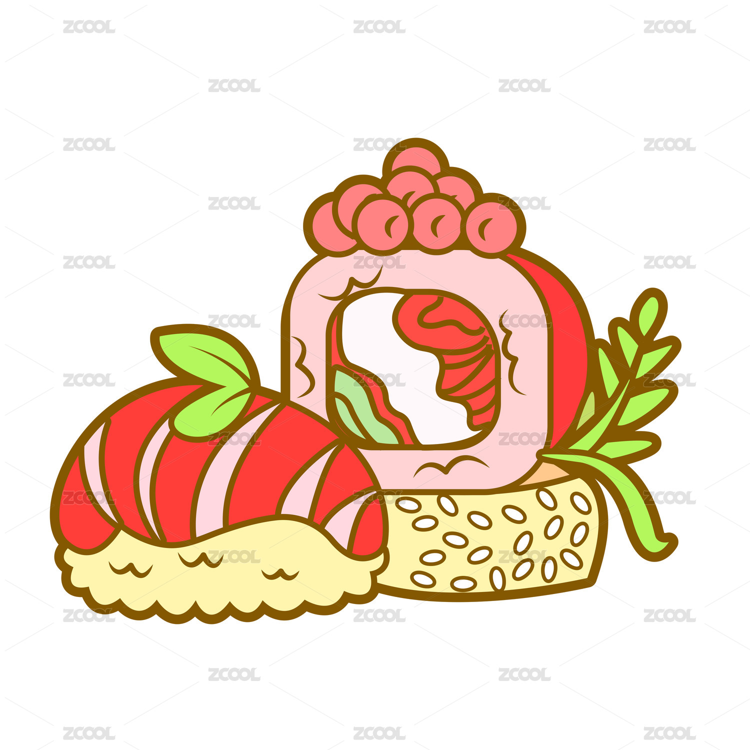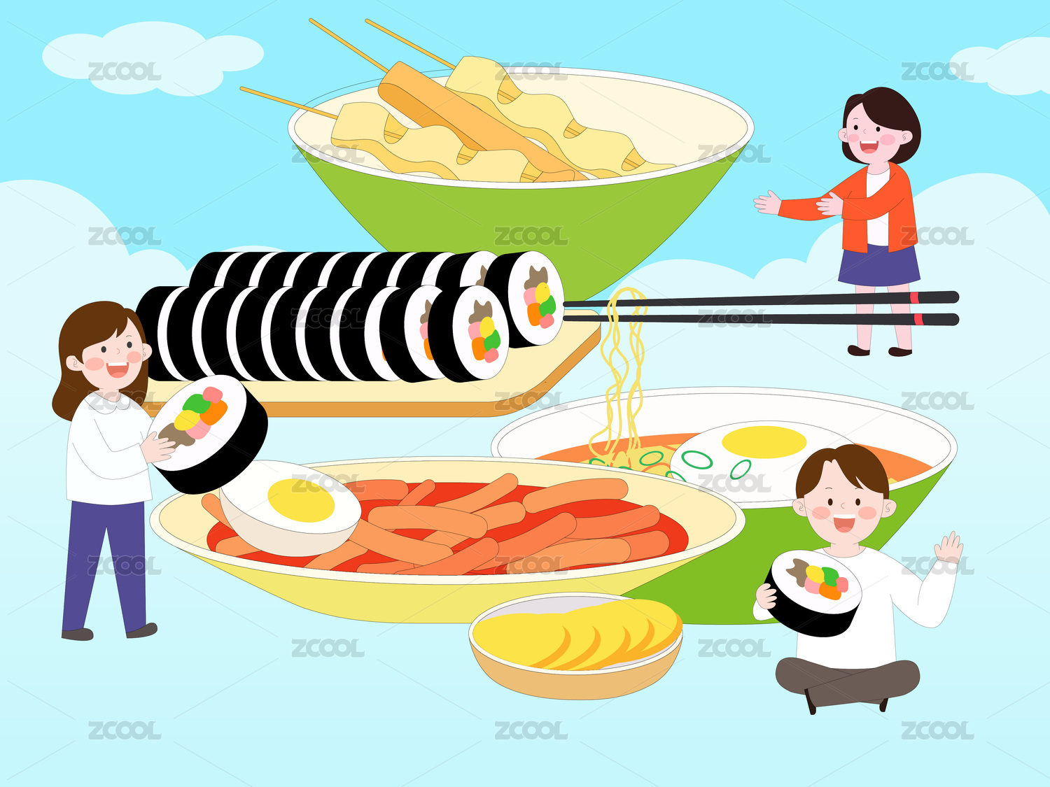 卡通快餐紫菜包饭泡面炒年糕食物插画