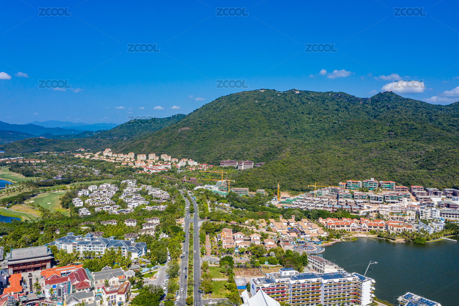 航拍海南三亚亚龙湾热带天堂森林公园山地