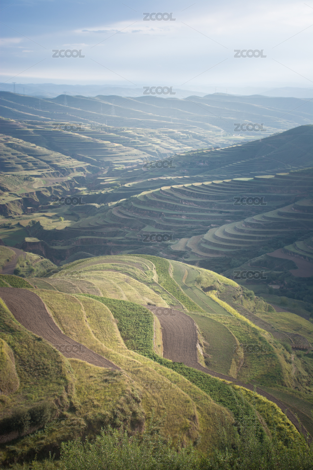 中国西部甘肃中部黄土高原山地梯田自然风光