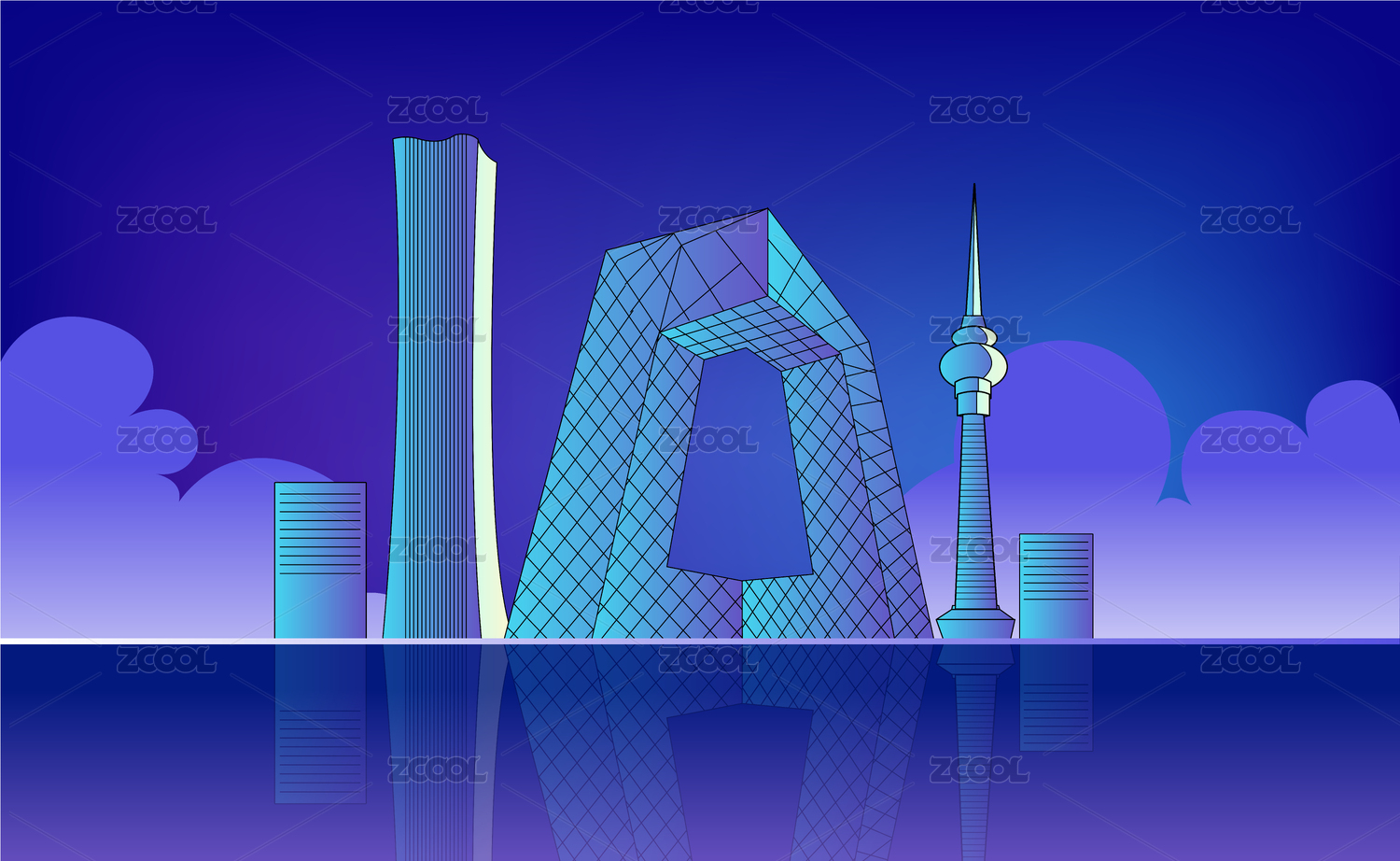 北京地标建筑CBD中心和中国樽