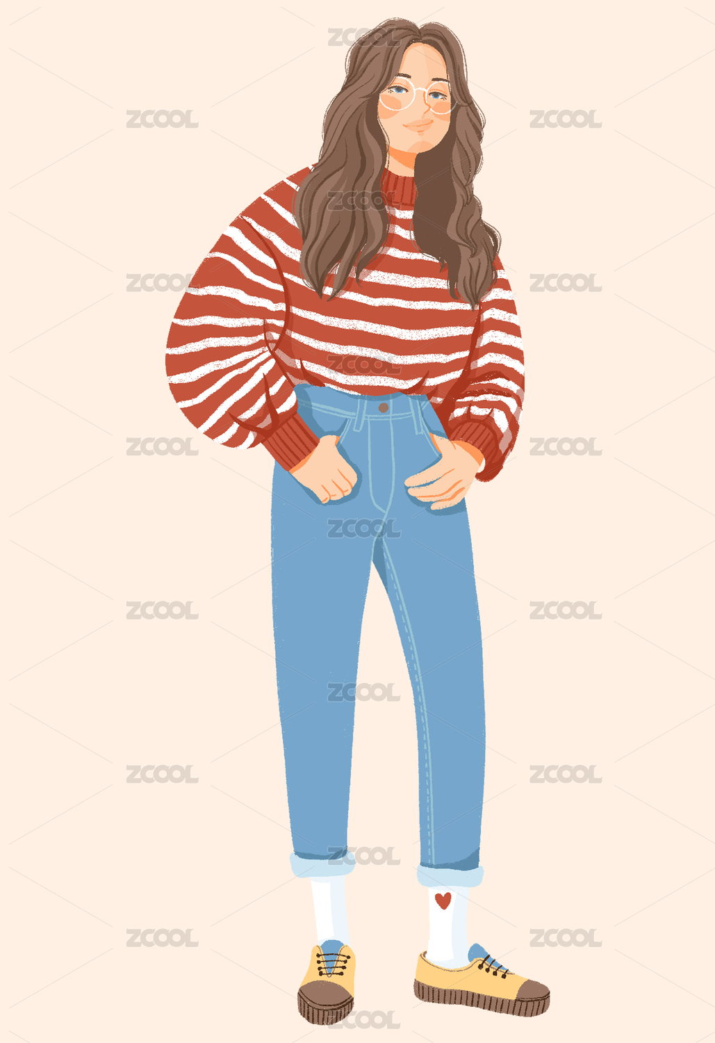原创手绘秋冬潮流穿搭美女插画
