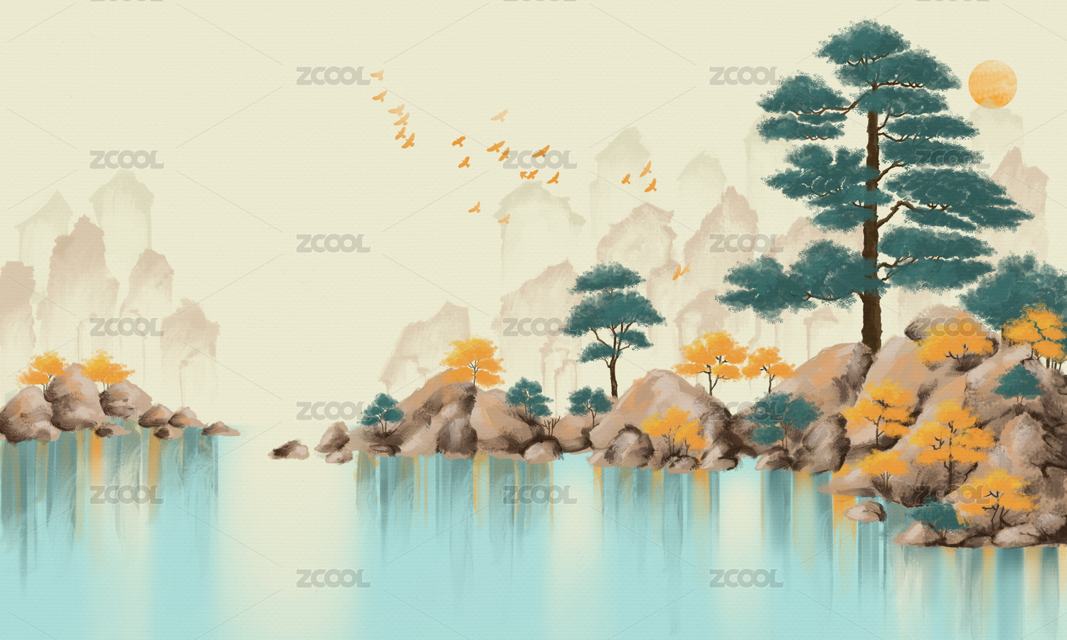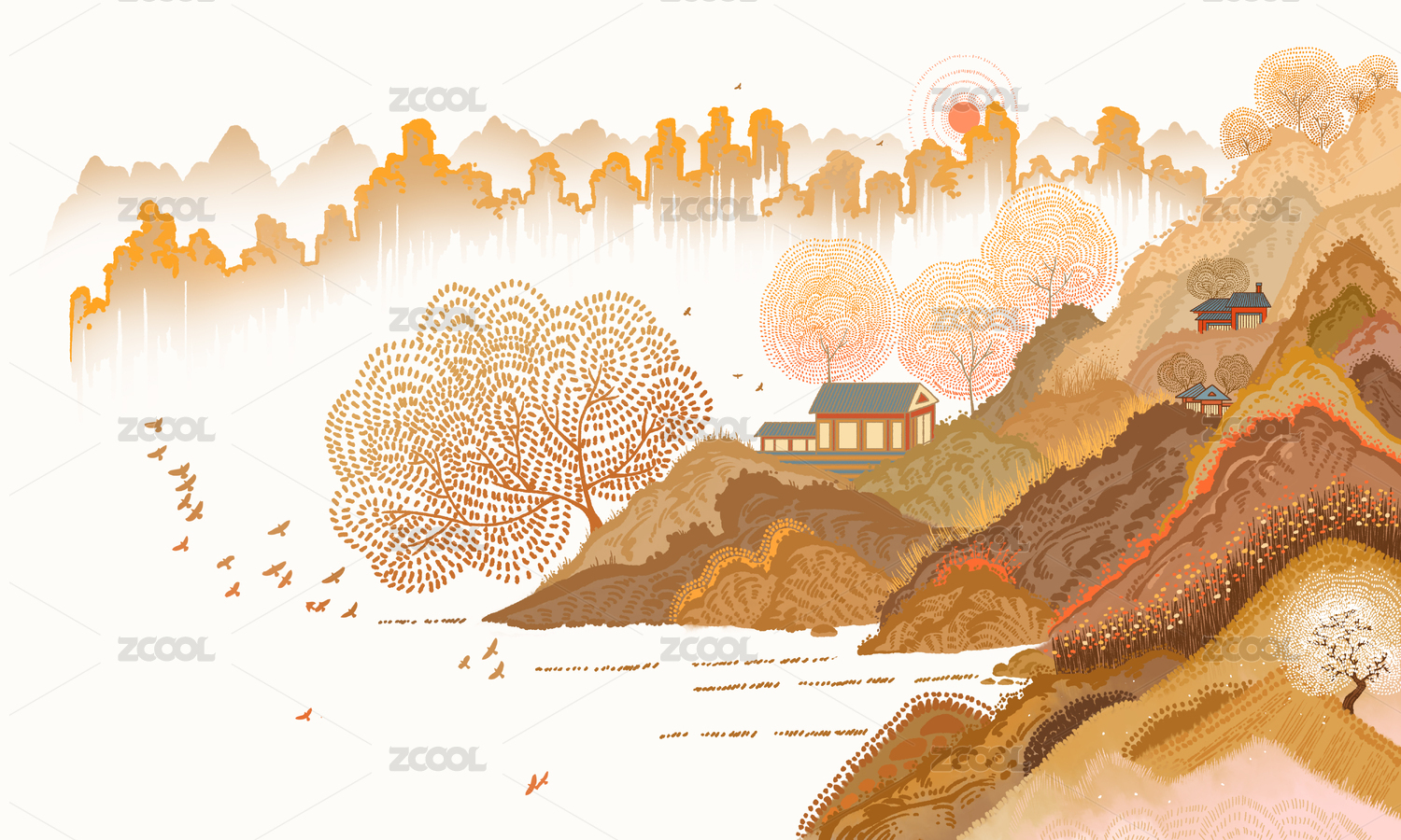 秋冬山水风景画