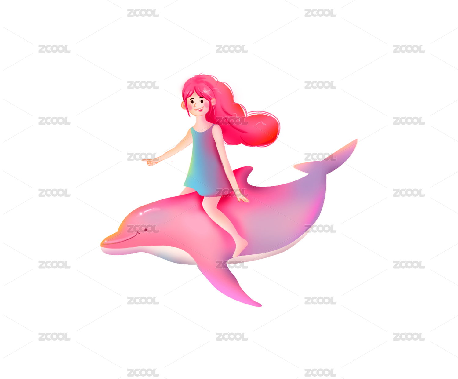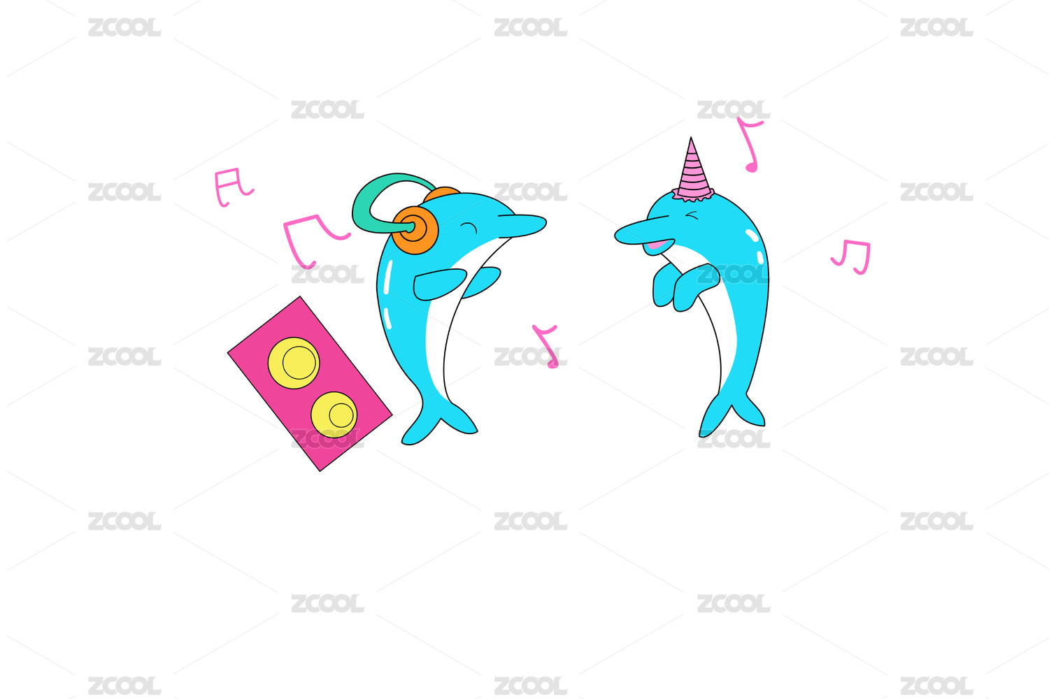 海豚可爱唯美野生动物3D卡通插画壁纸