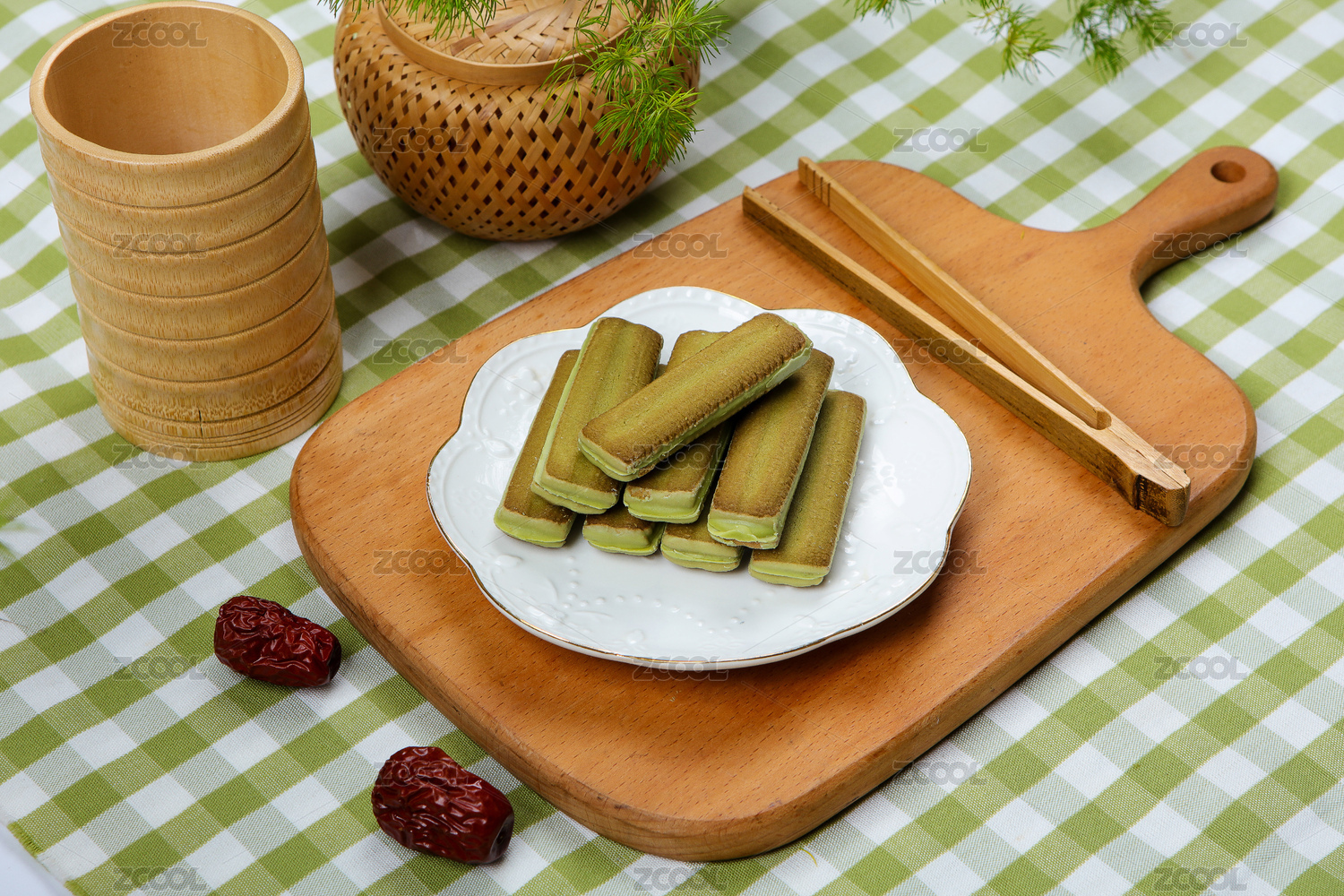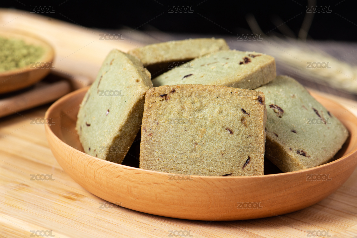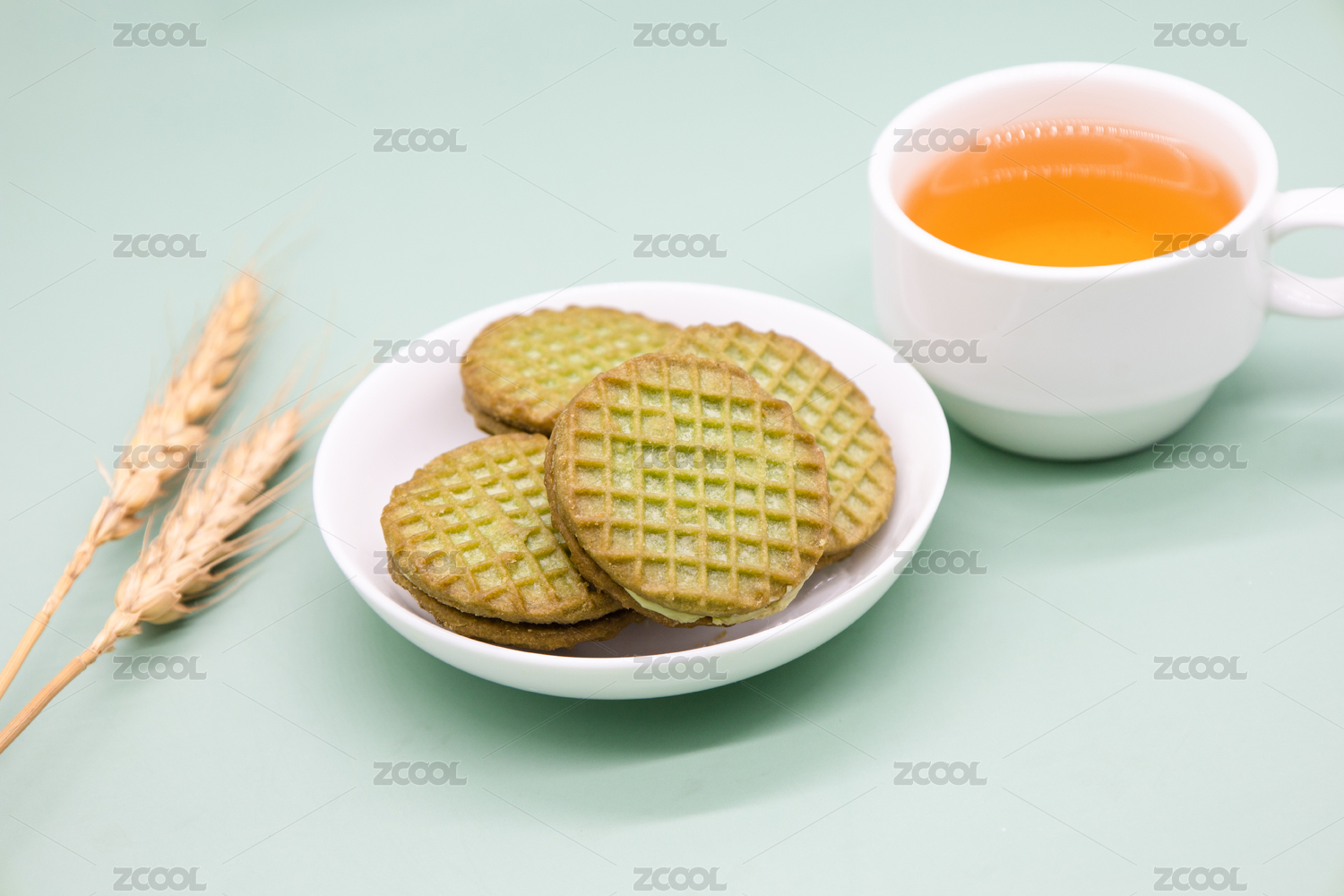 绿色背景休闲小吃零食抹茶饼干