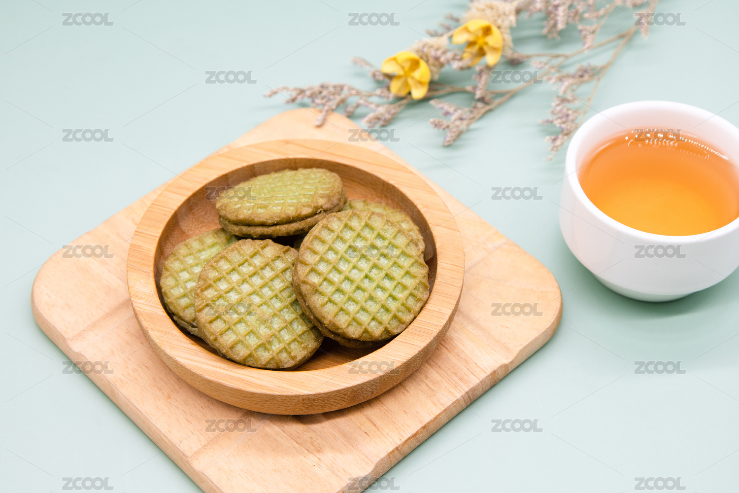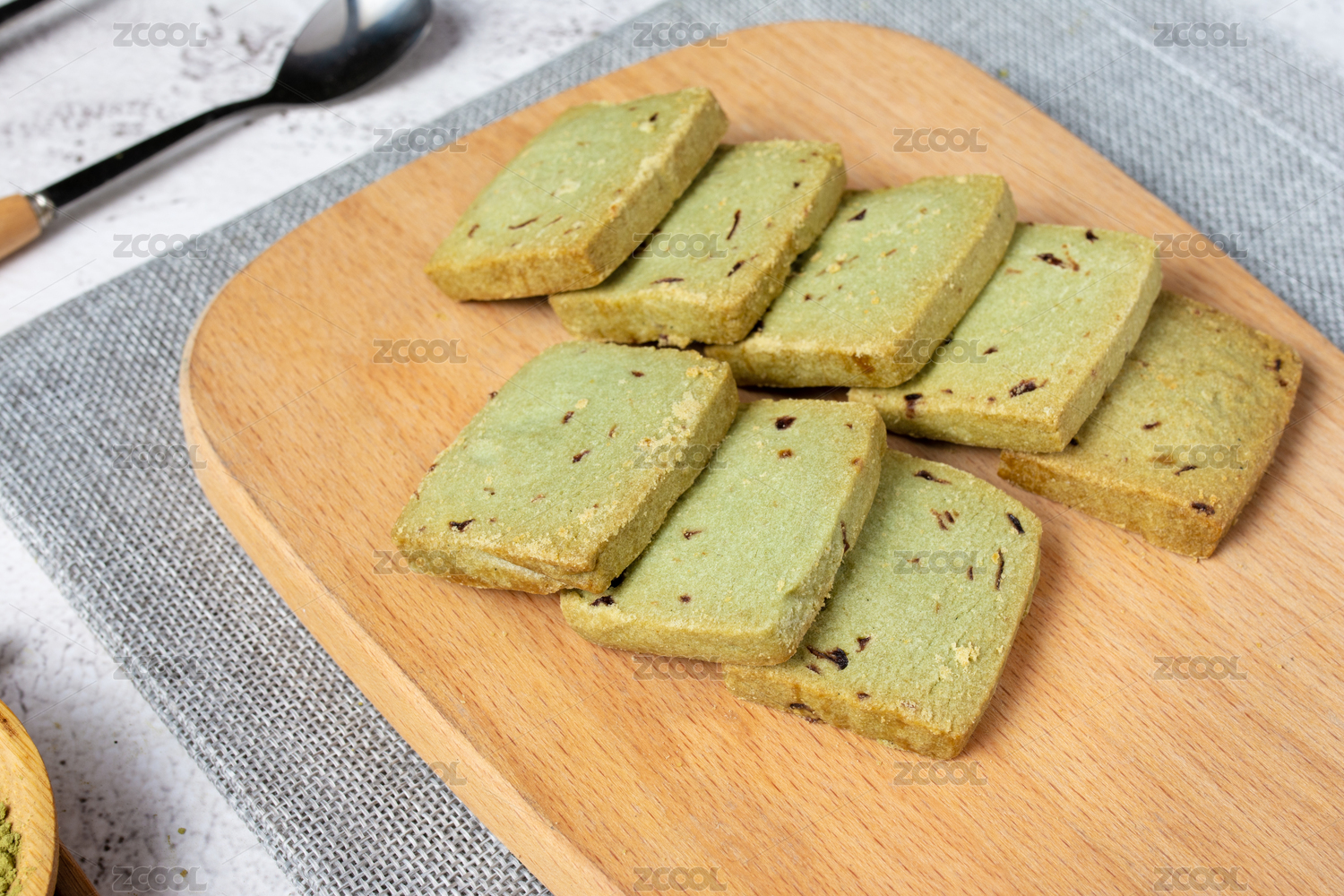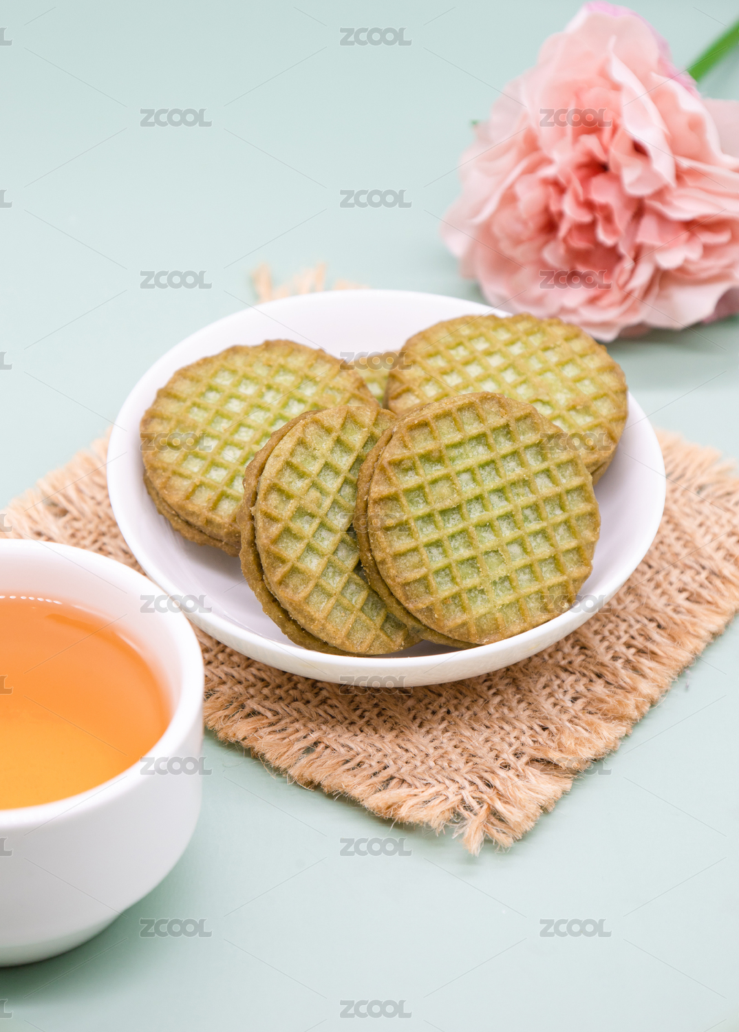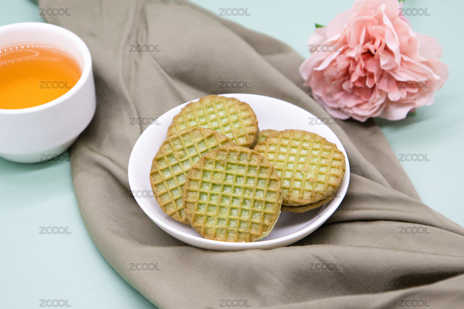 绿色背景休闲小吃零食抹茶饼干