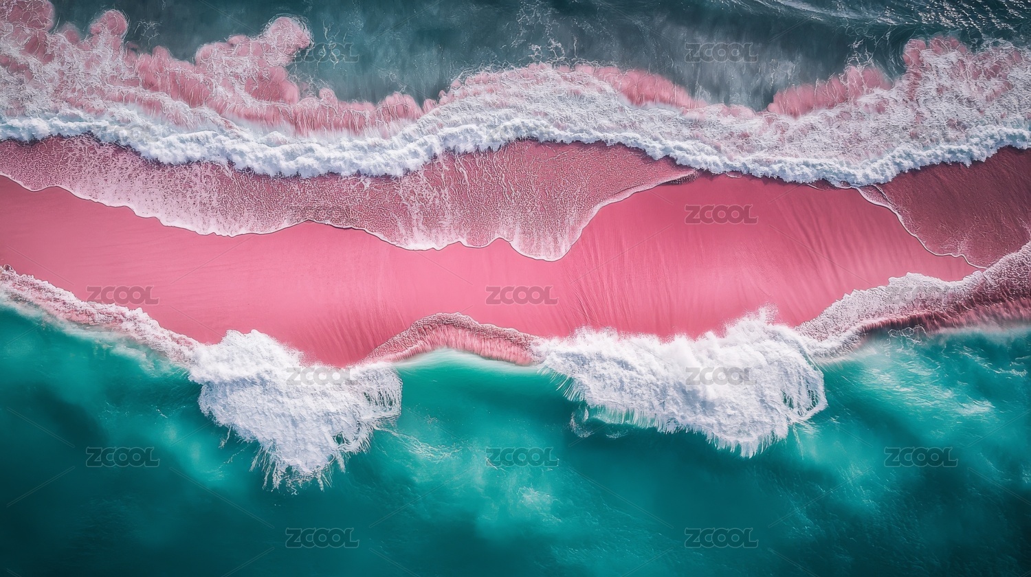 粉红沙滩海浪