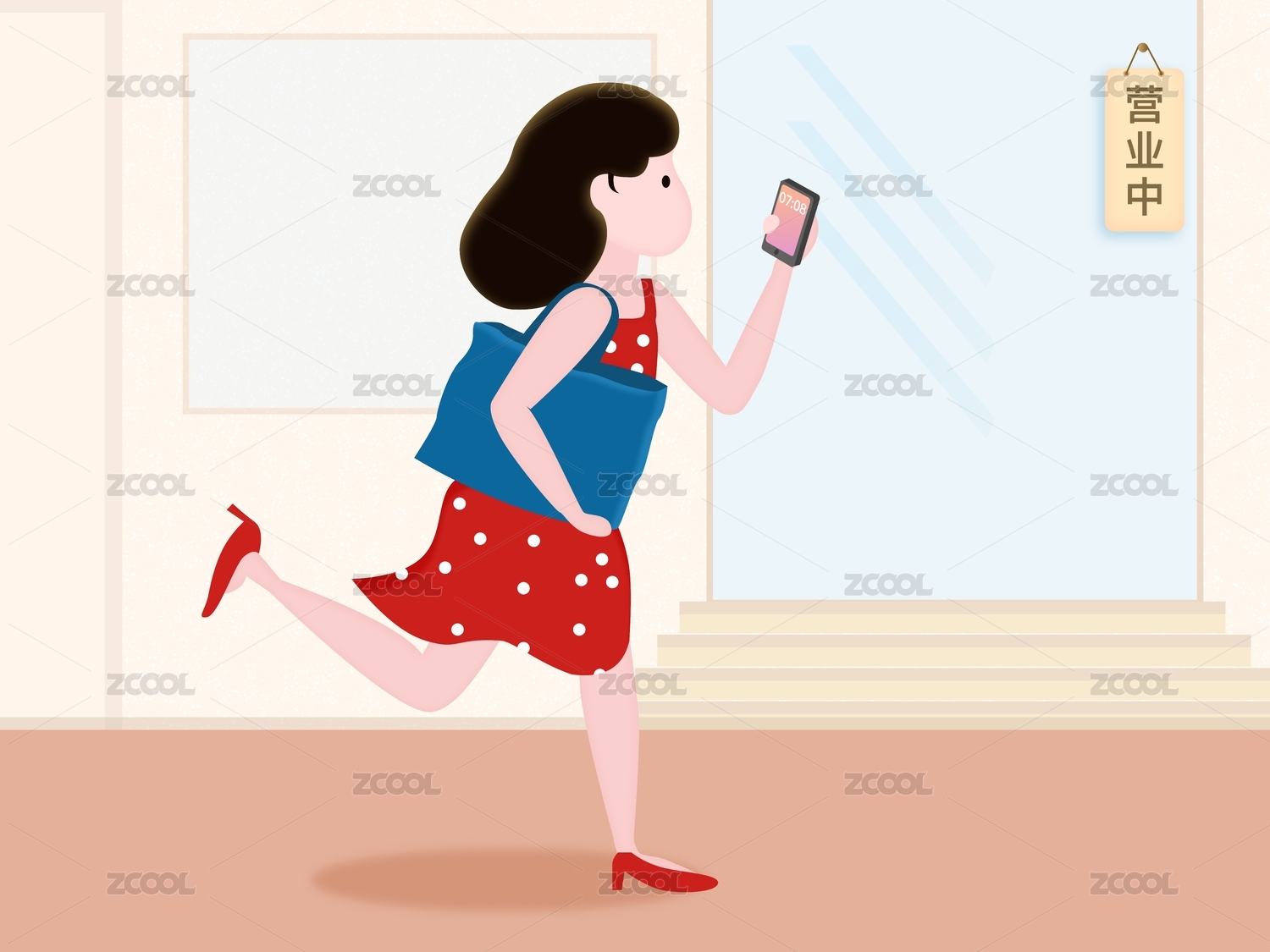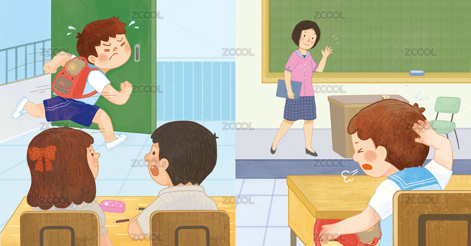 人物上班工作迟到奔跑插画招聘面试活动海报
