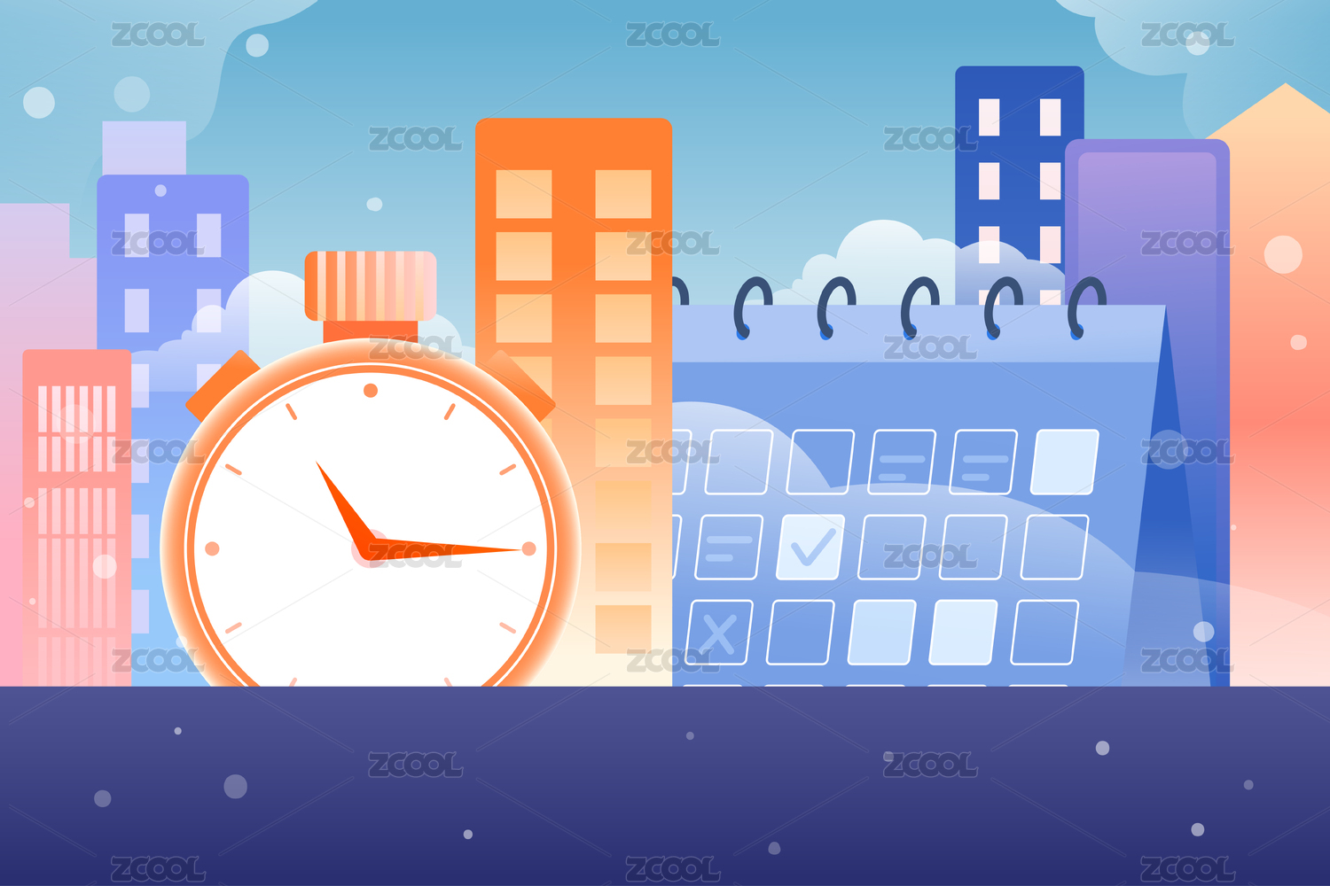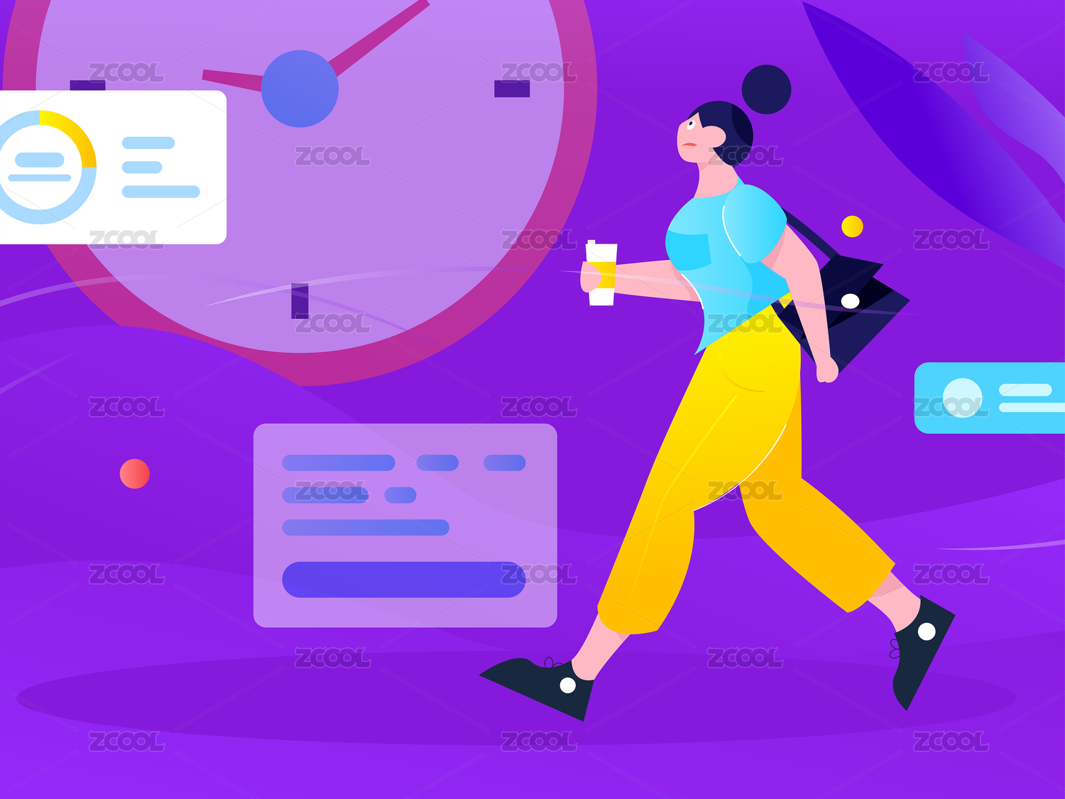 人物上班工作赶时间迟到奔跑活动倒计时插画