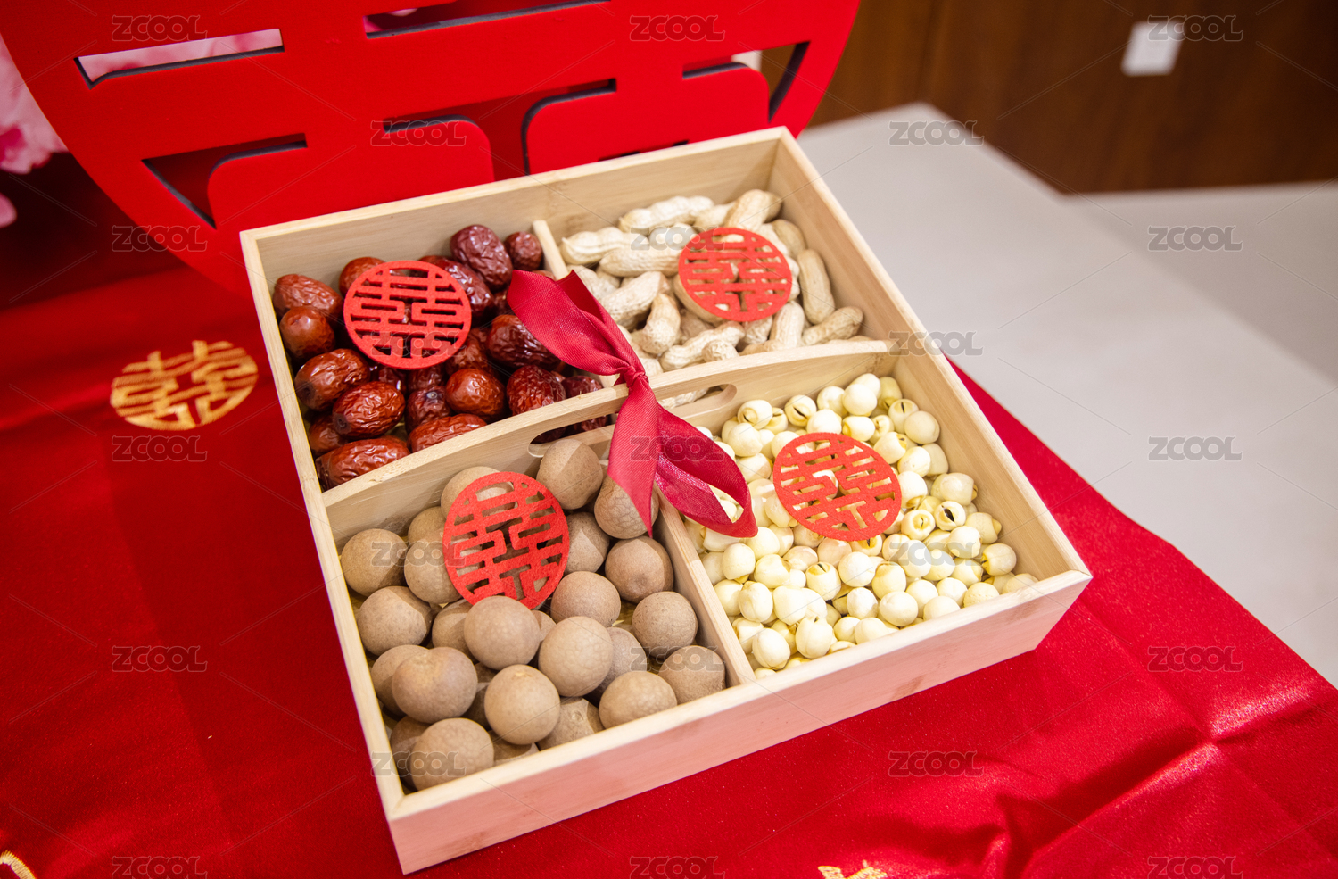 订婚仪式上摆放的红枣花生桂圆和莲子