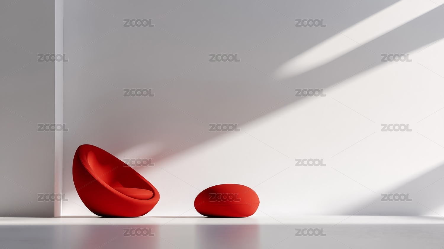 红色空间里的黑色蛋椅