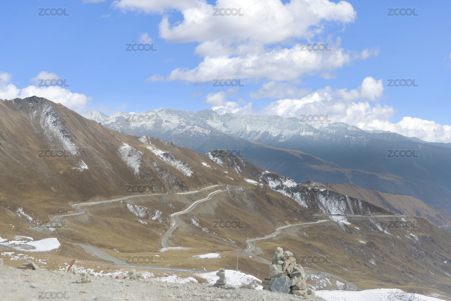 蓝天白云下四川阿坝州夹金山盘山公路景象