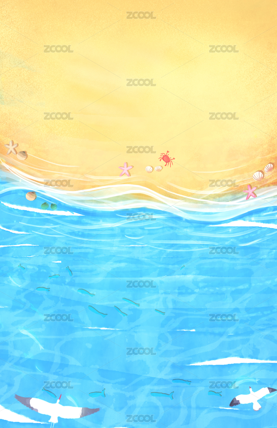 沙滩海洋插画