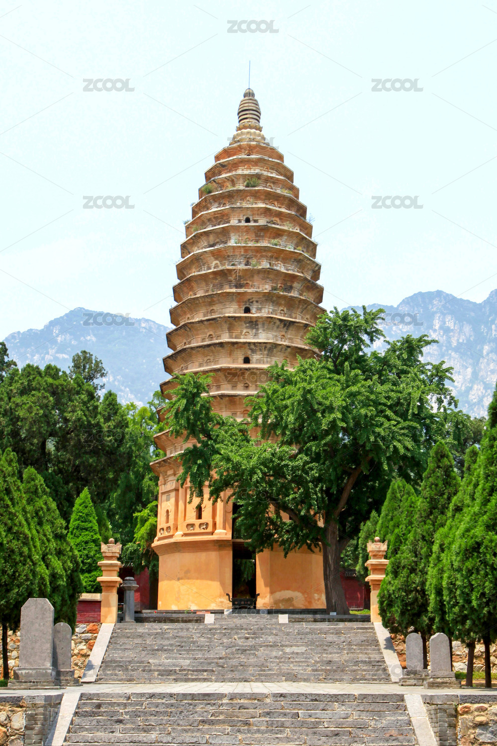 河南省郑州市登封市嵩山太室山嵩岳寺塔航拍