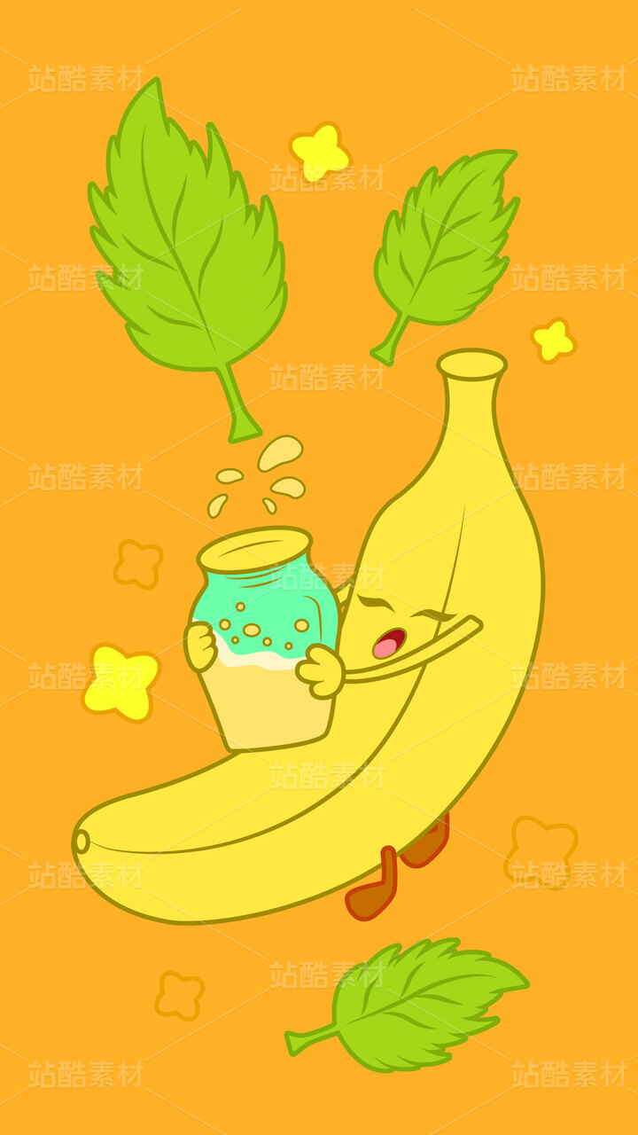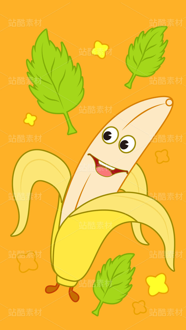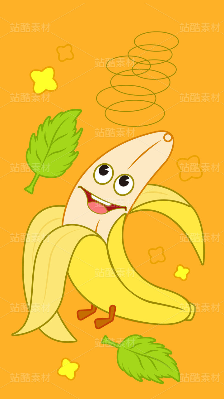 卡通风儿童健康饮食香蕉水果卡片教育插画