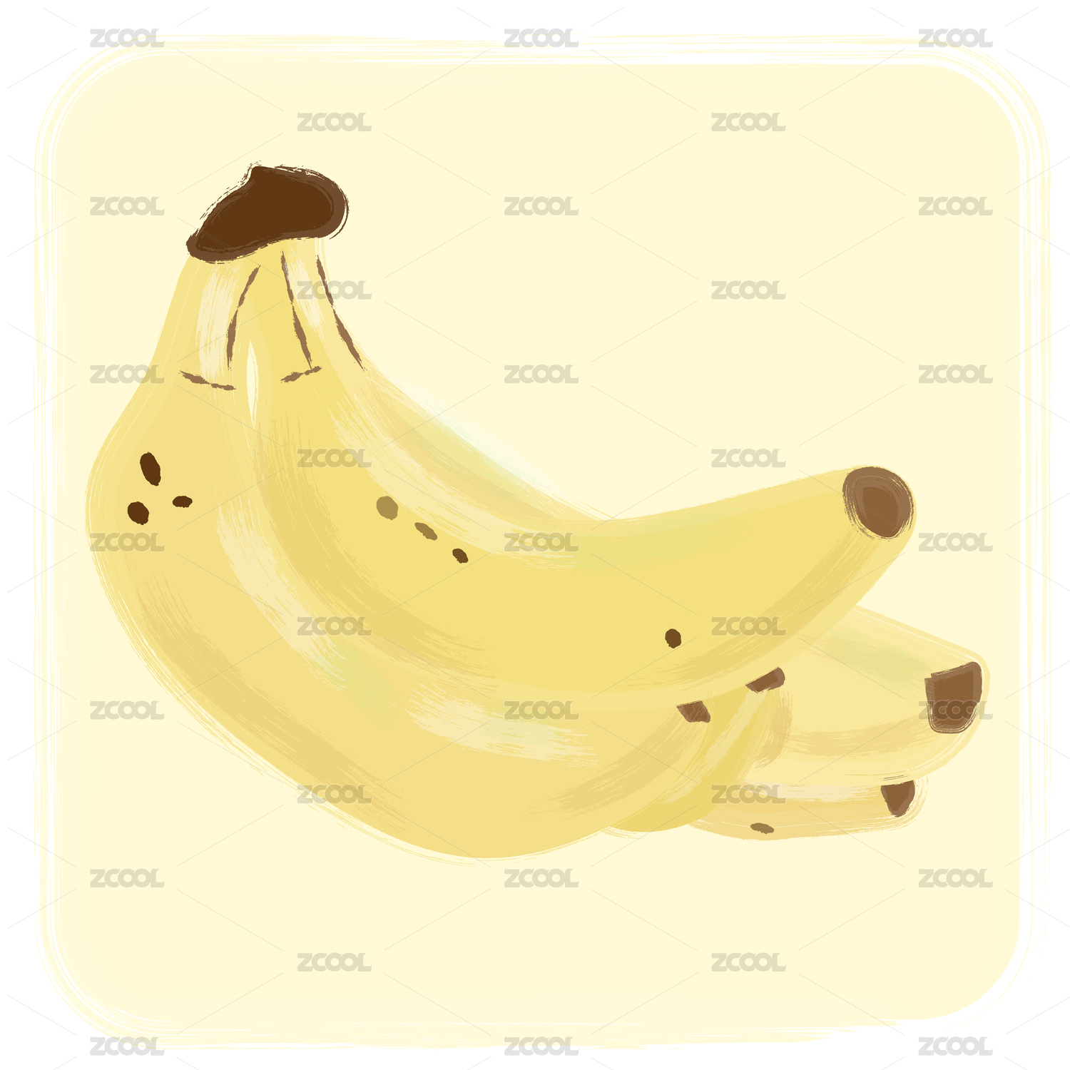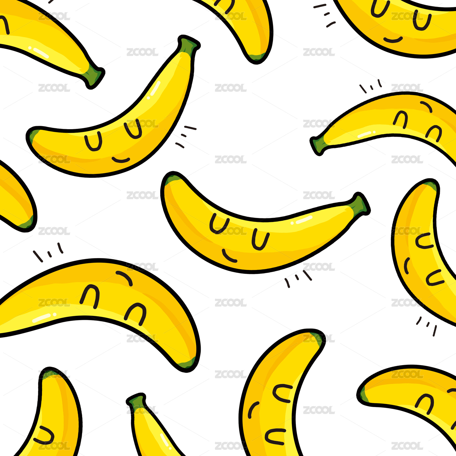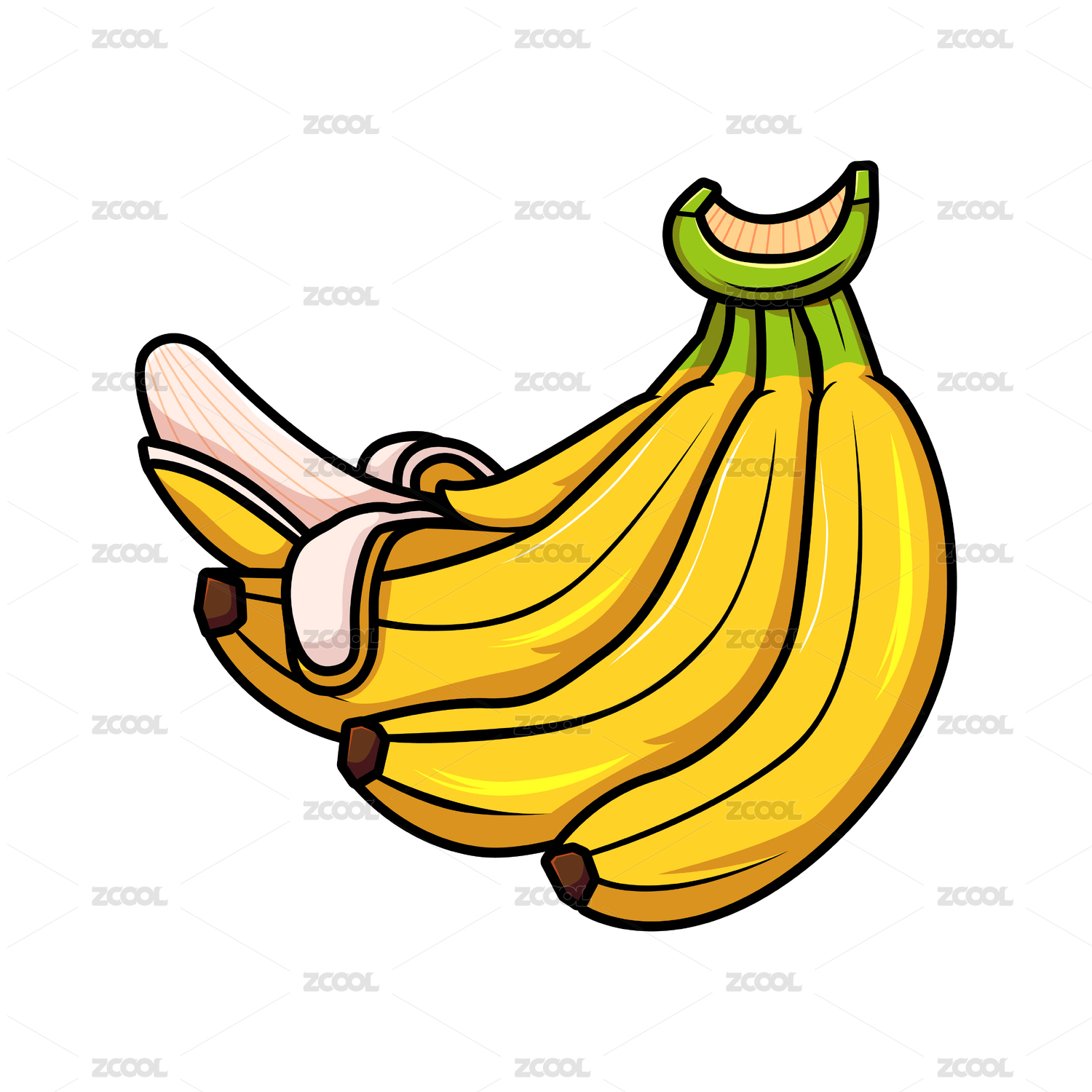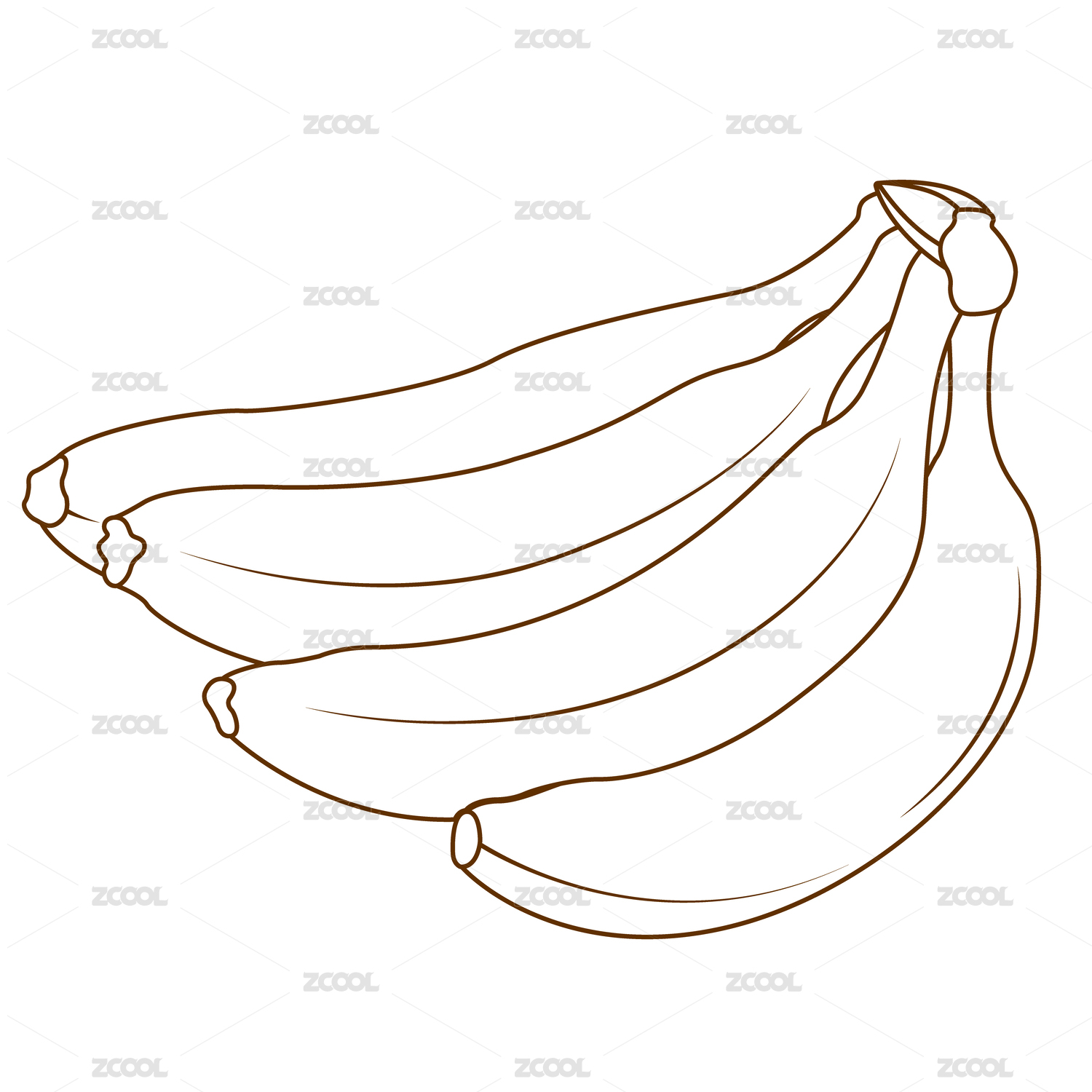 黑白矢量线稿香蕉手绘插画元素潮流水果