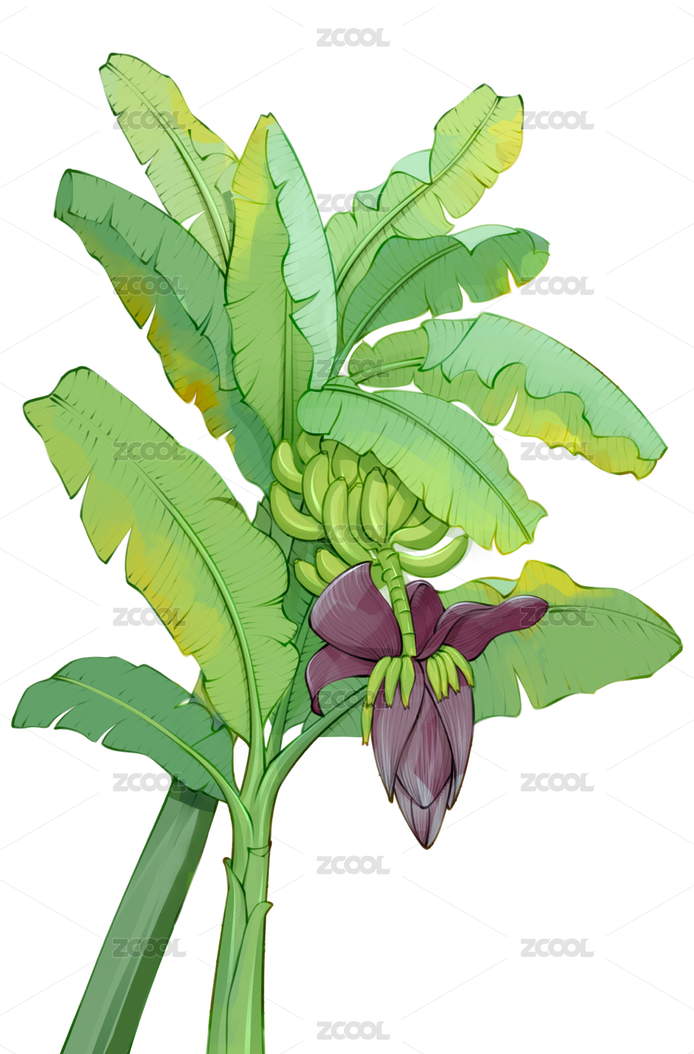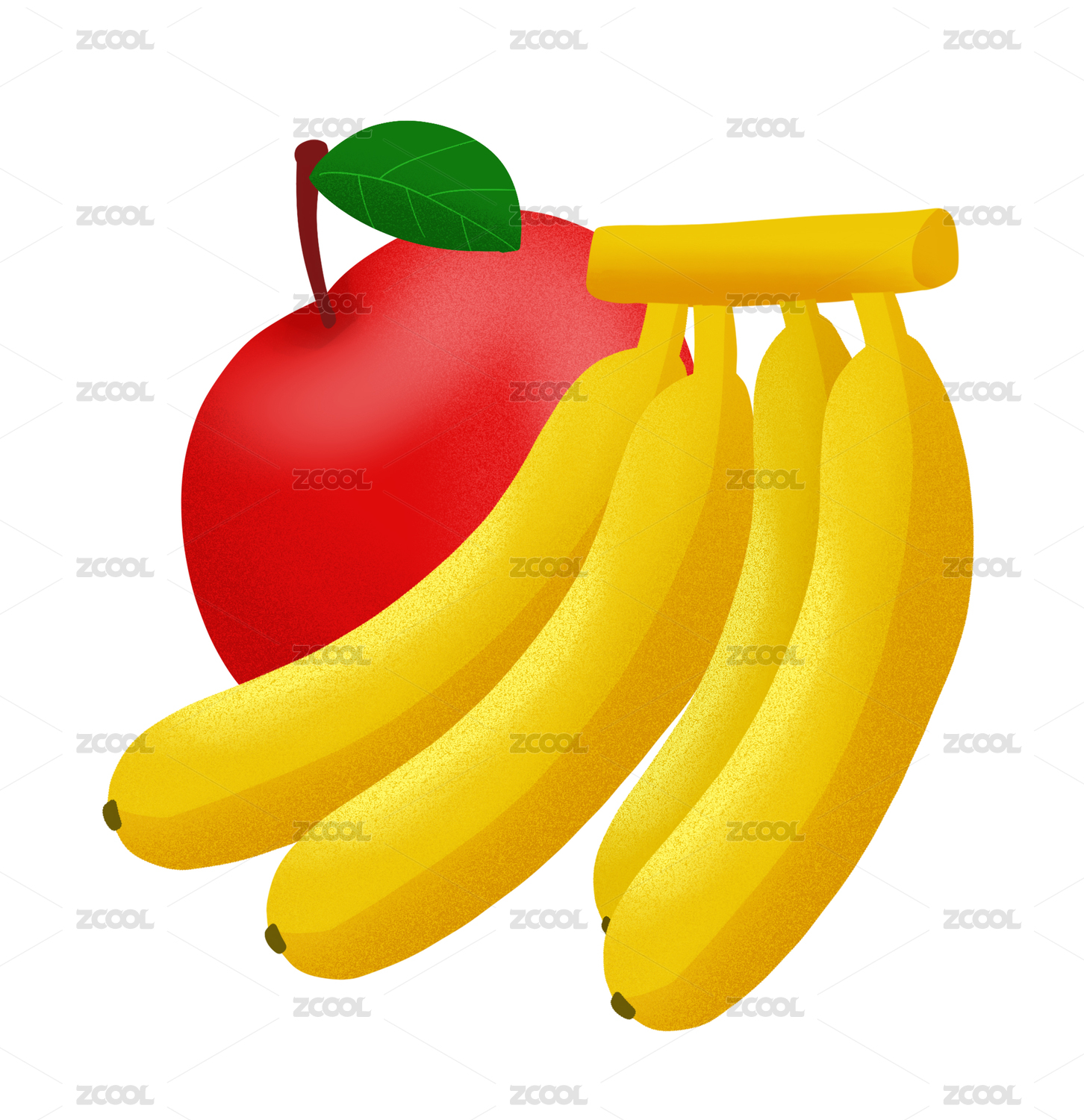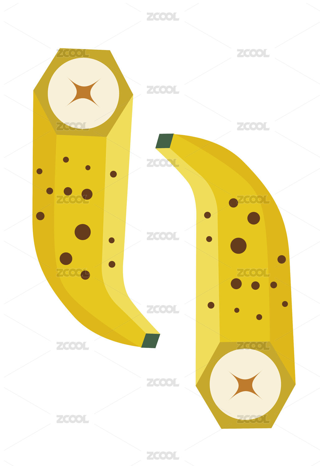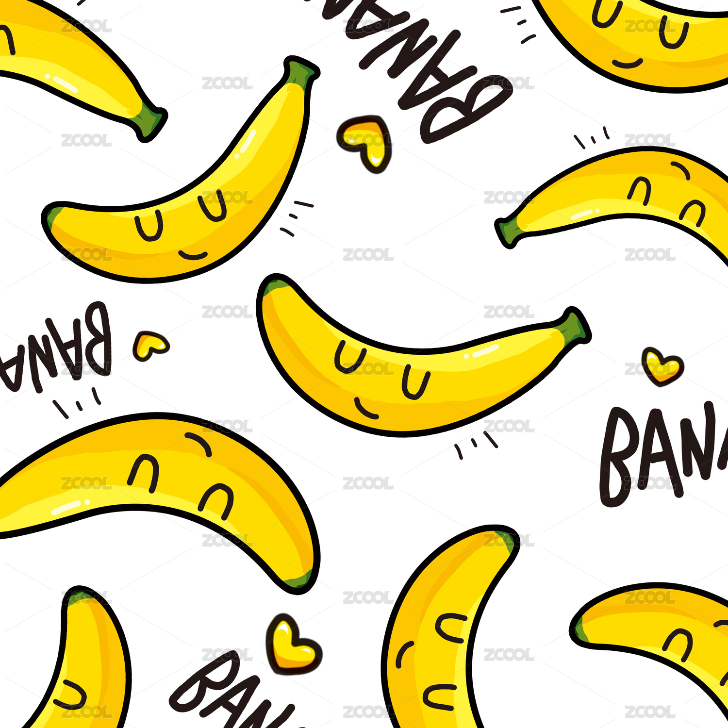 黑白矢量线稿香蕉手绘插画元素潮流水果