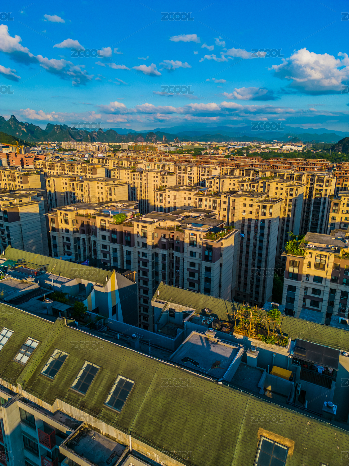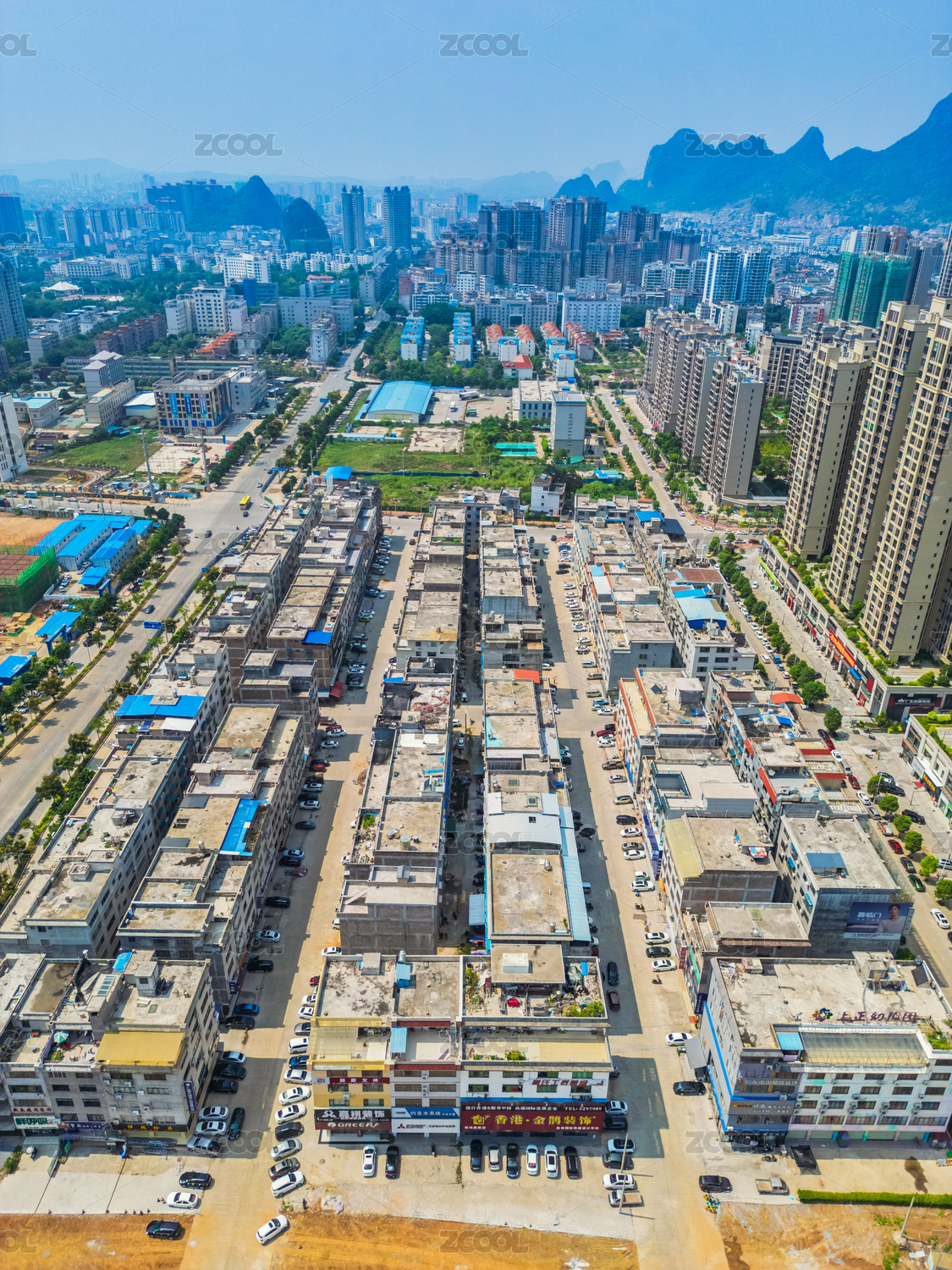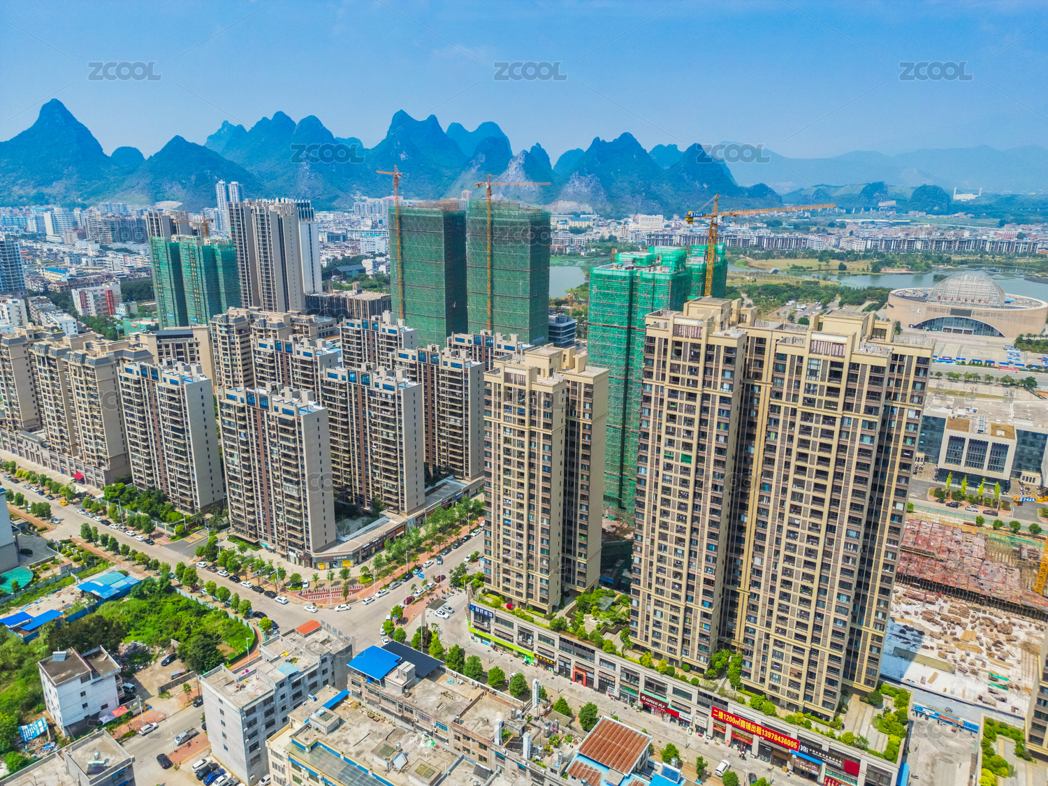 傍晚时间中国广西桂林七星区万达商圈楼盘