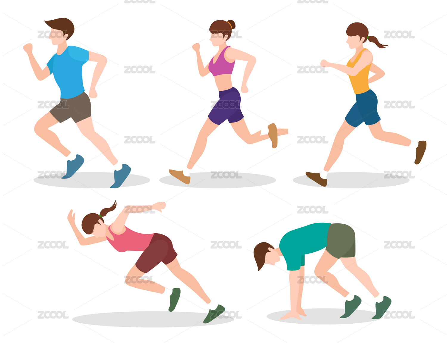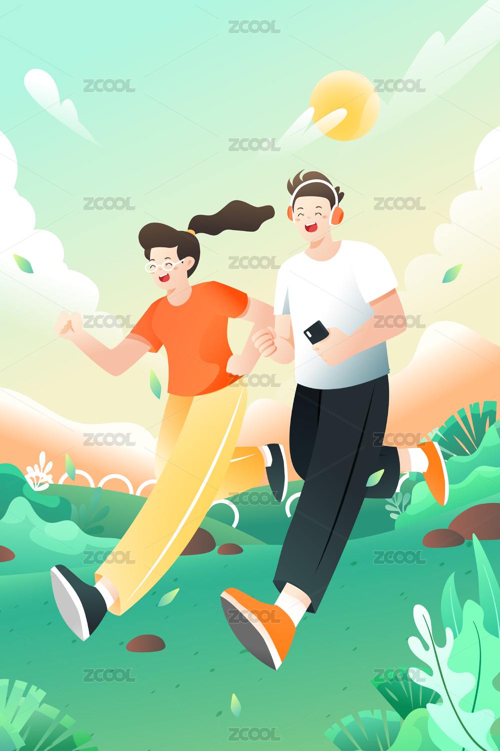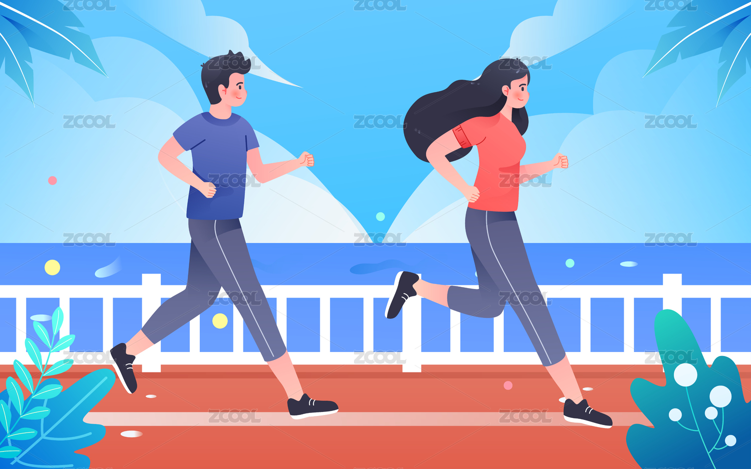 人物跑步运动健身绿色出行减肥瘦身卡通插画