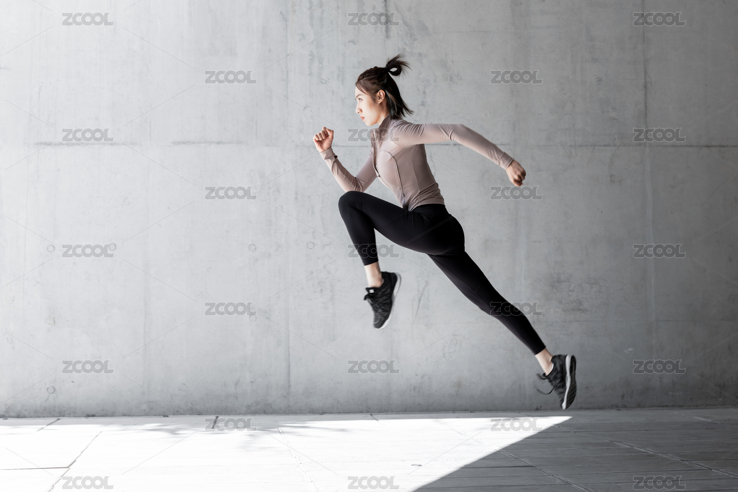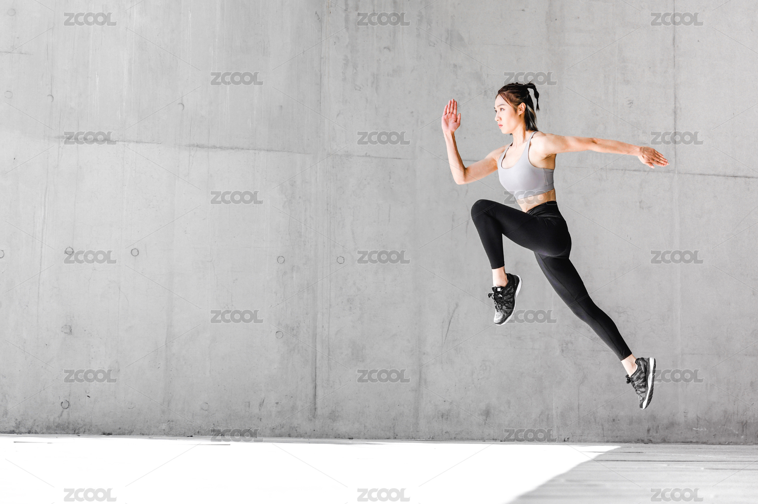 一个健美女性在花草丛间轻盈的跑步做健身运动--扁平化插画