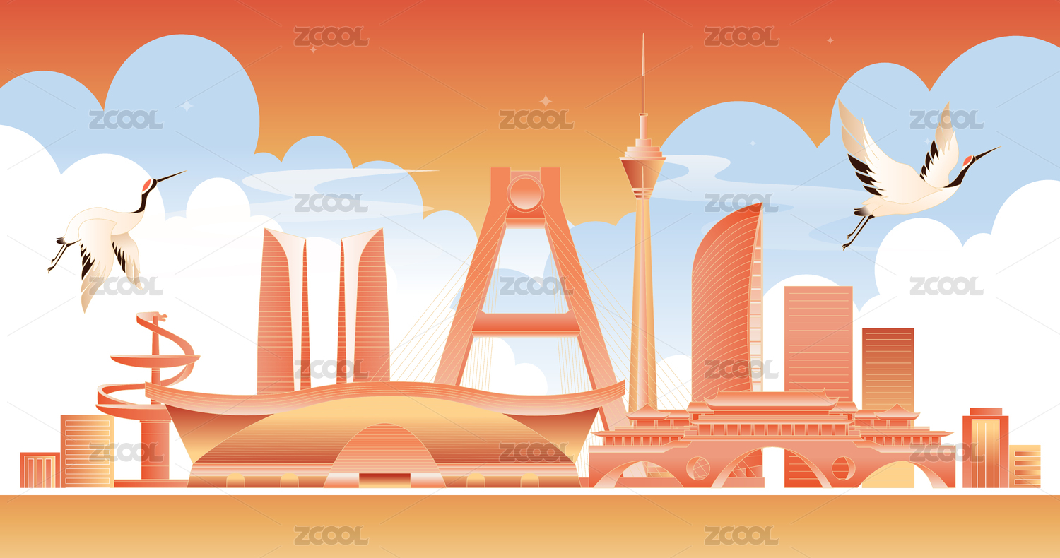 宿迁城市天际线卡通插画