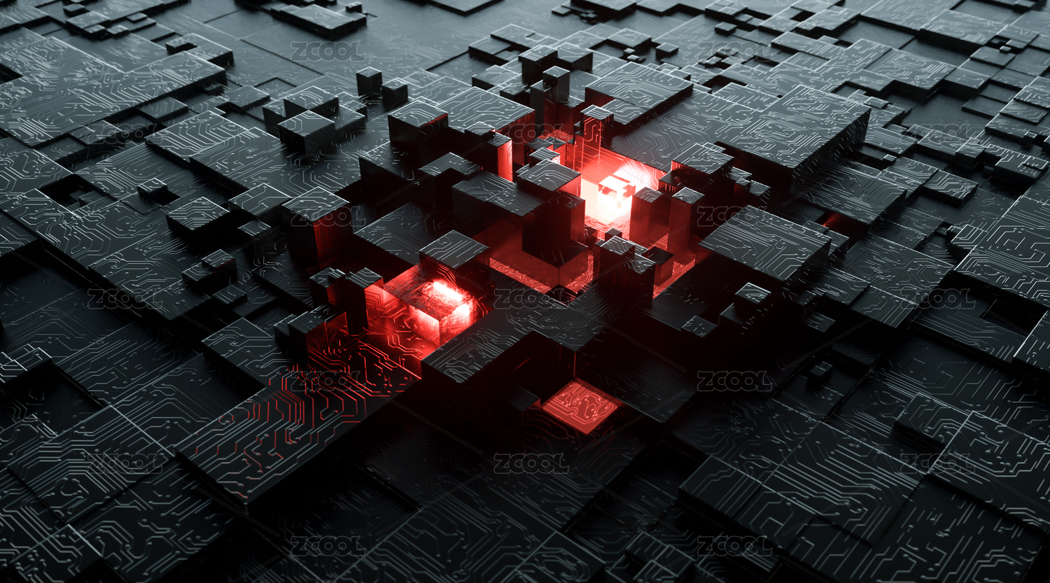 暗黑红色发光能量晶体抽象空间
