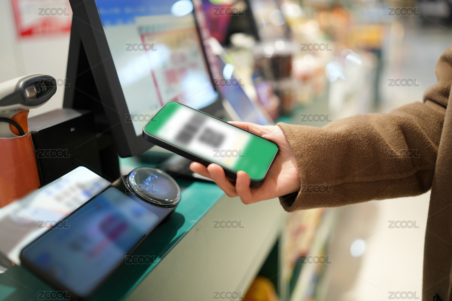 杂货店收银台的现代移动支付
