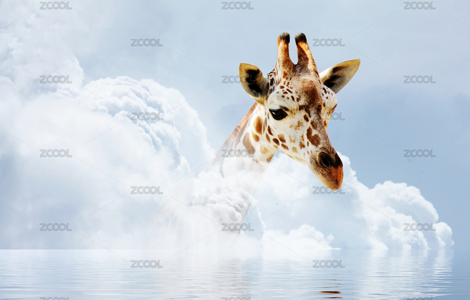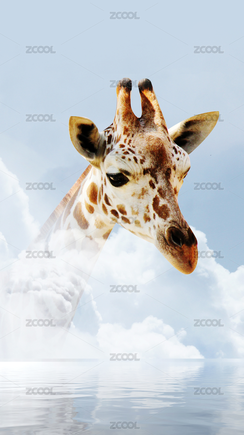 长颈鹿和白云组成的空气污染海报
