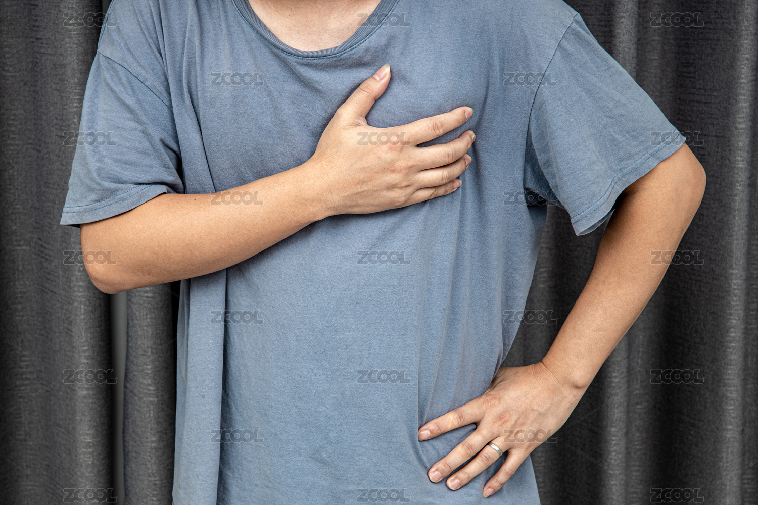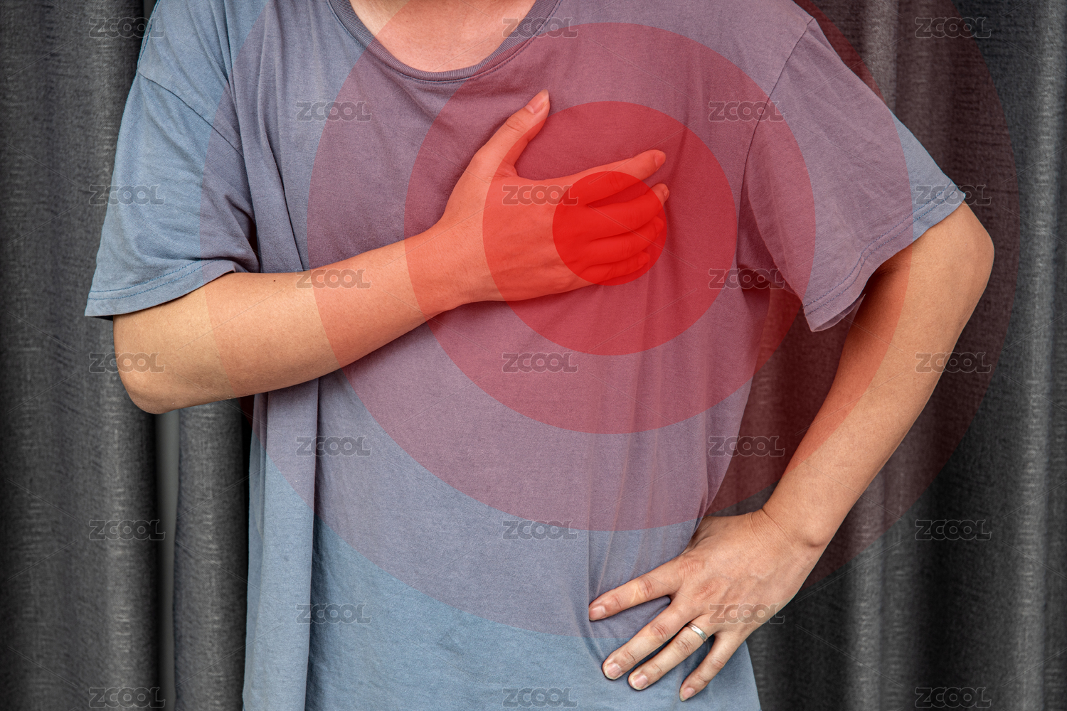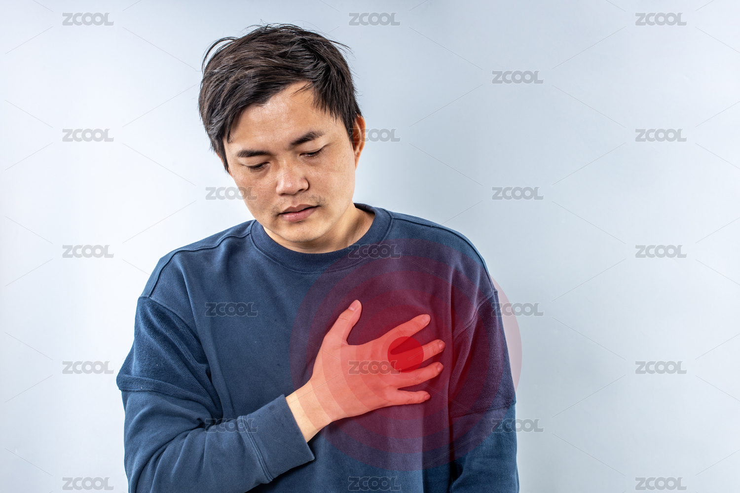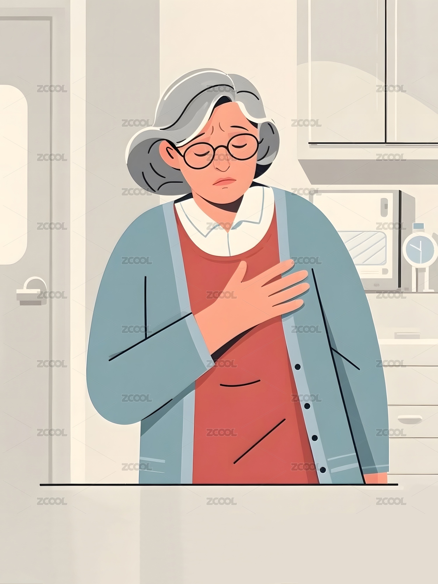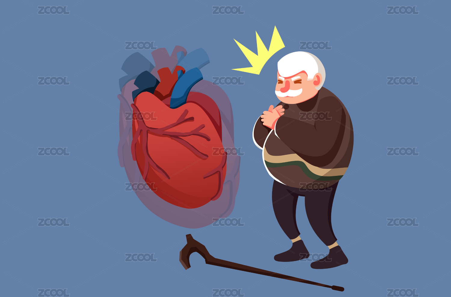 卡通手绘老人突发心梗心脏病胸口疼痛插画