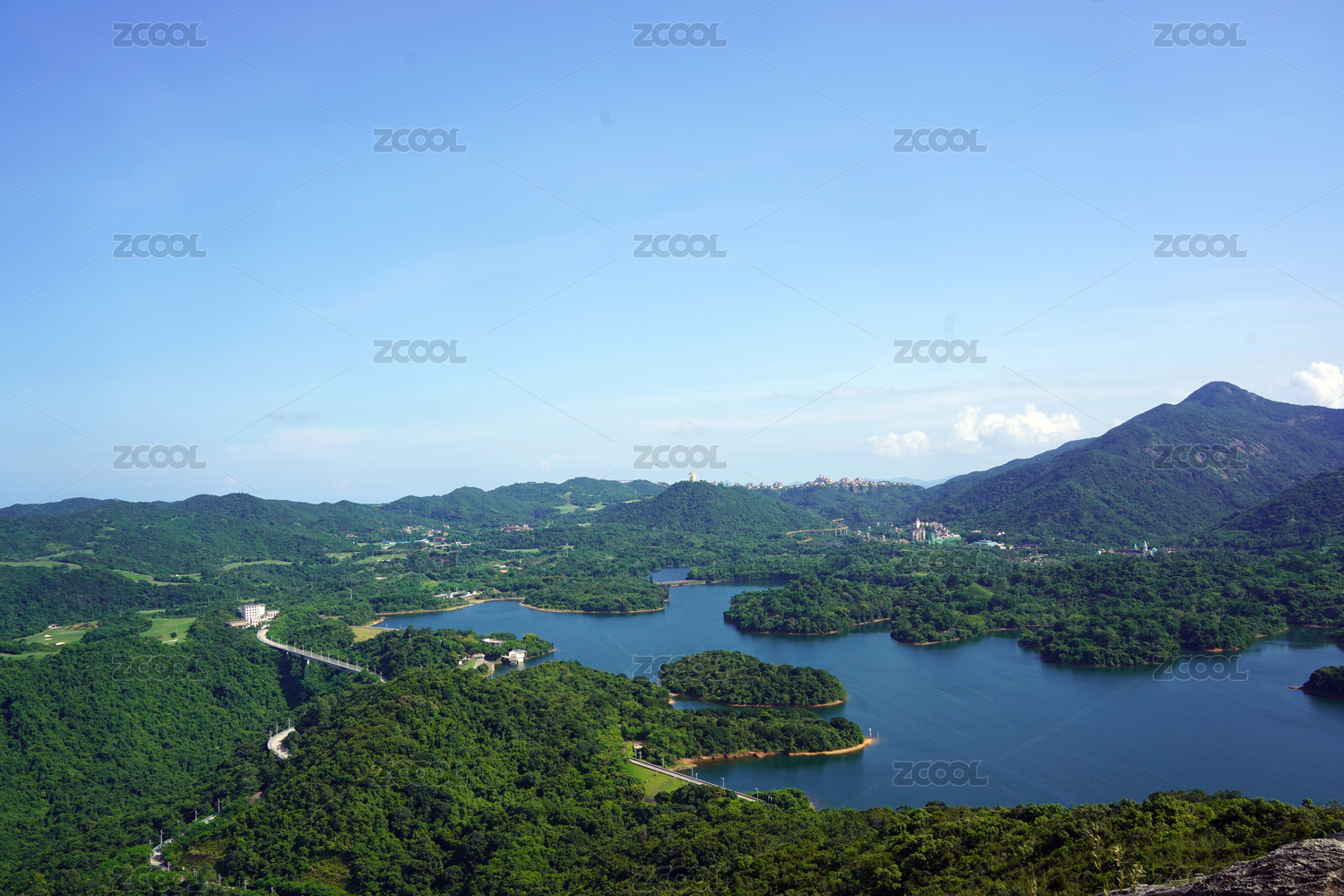 中国甘肃省天祝县石门水库蓝天白云绿水青山