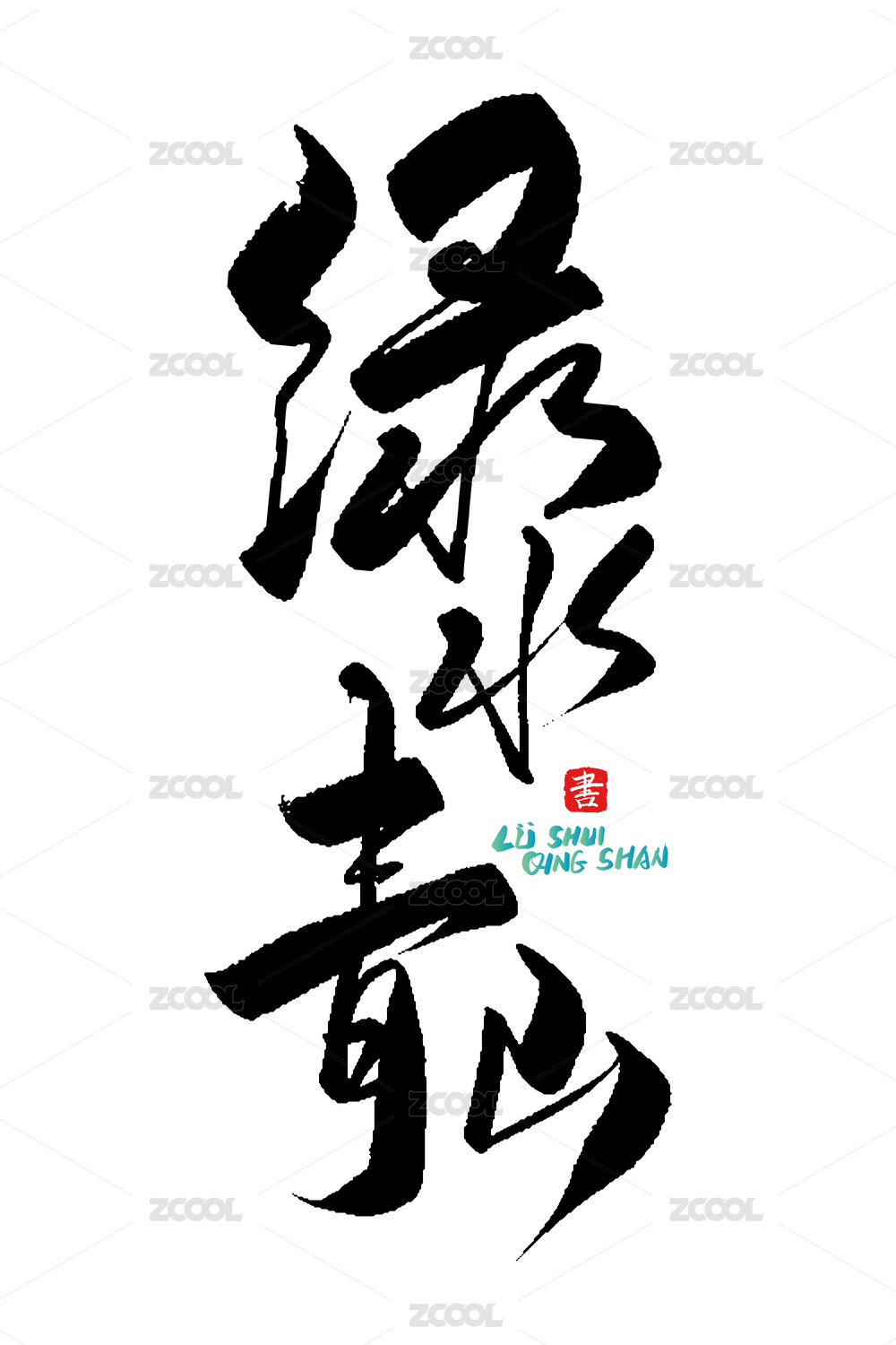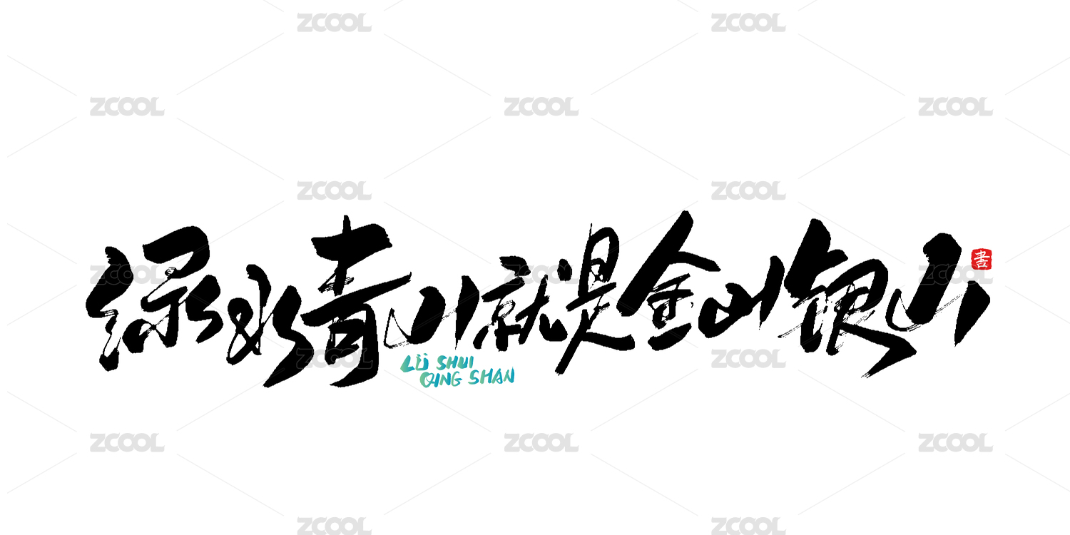 绿水青山艺术字矢量绘制