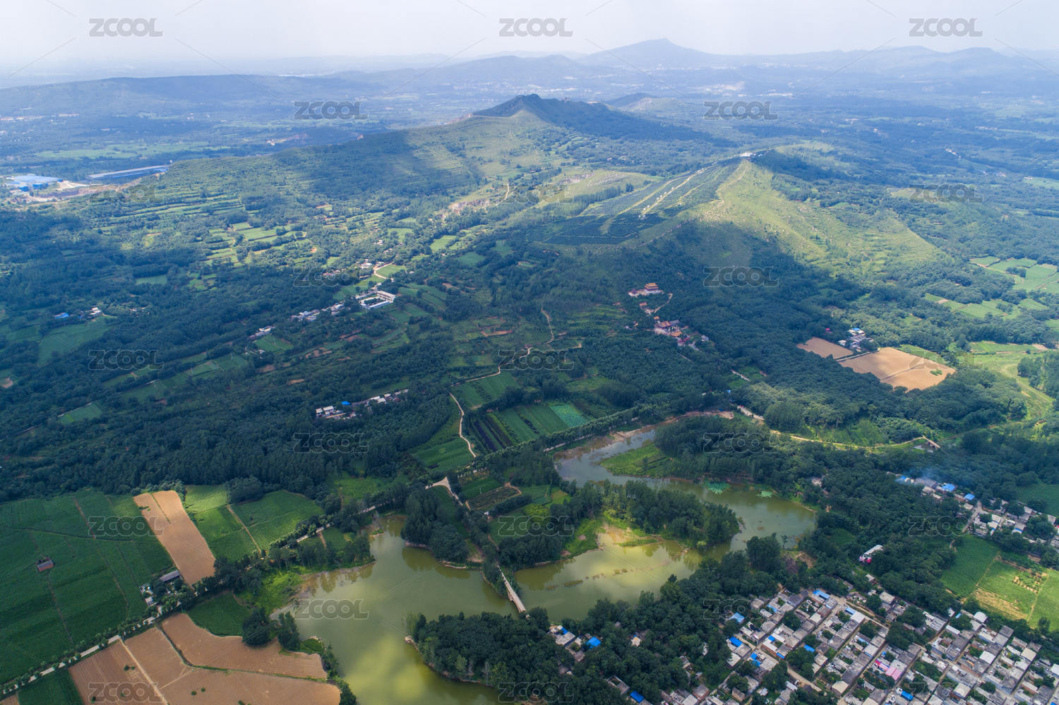航拍中国河南省禹州市方岗镇绿水青山