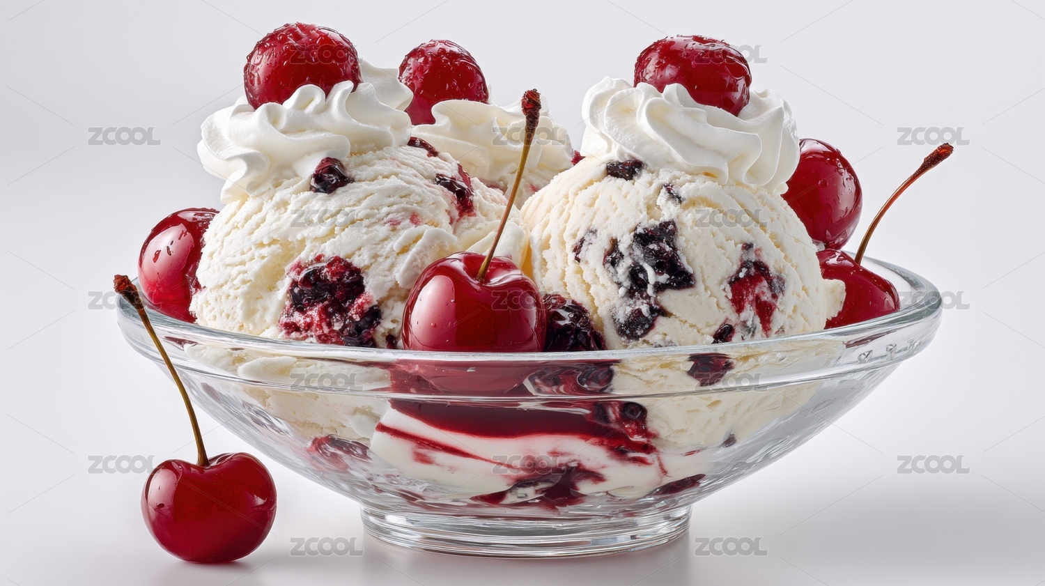 樱桃冰淇淋配鲜奶油