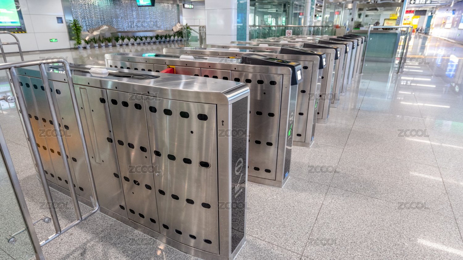 高铁站里关闭的闸门