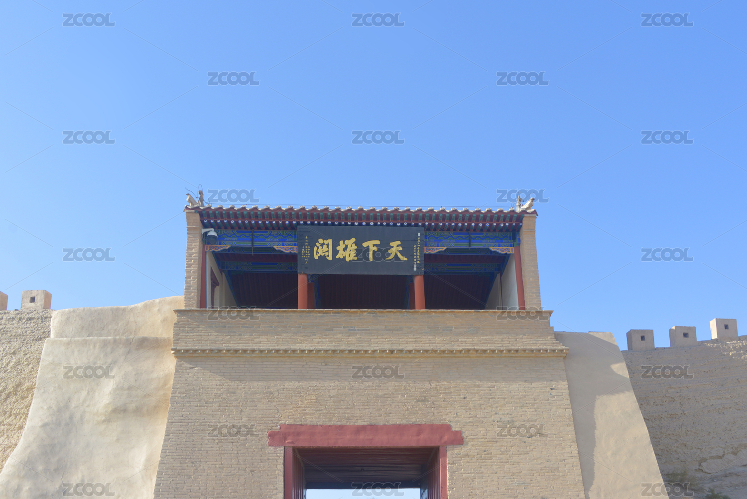 中国甘肃嘉峪关关城东闸门城楼天下雄关匾额