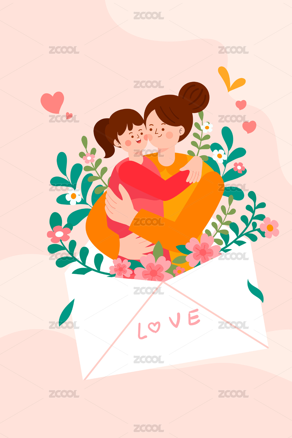 母亲节母爱扁平人物插画