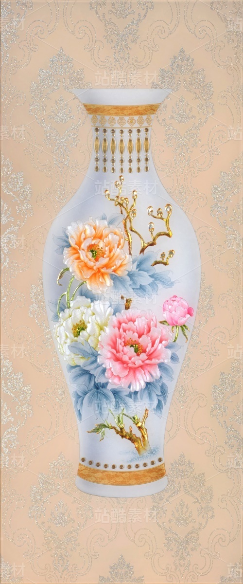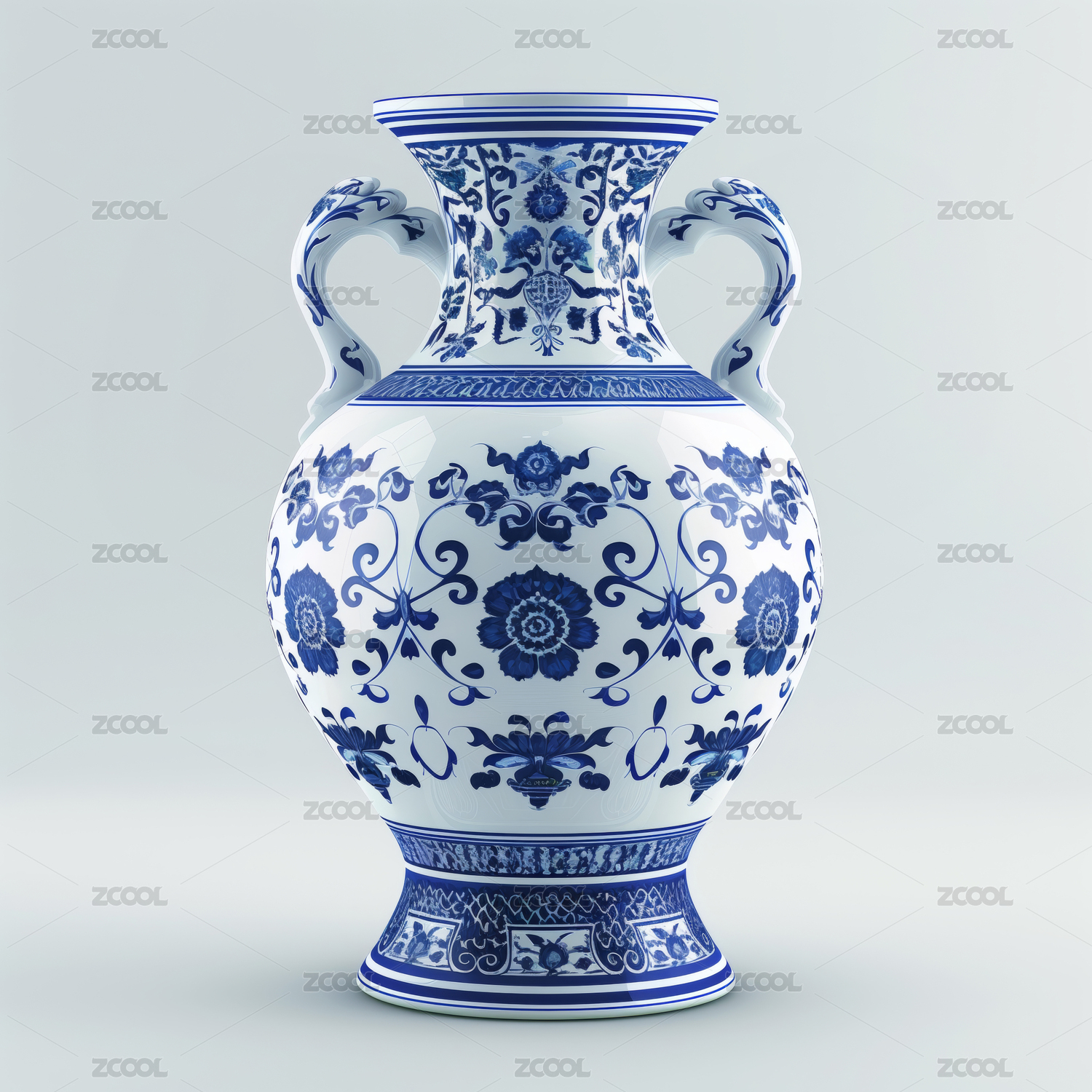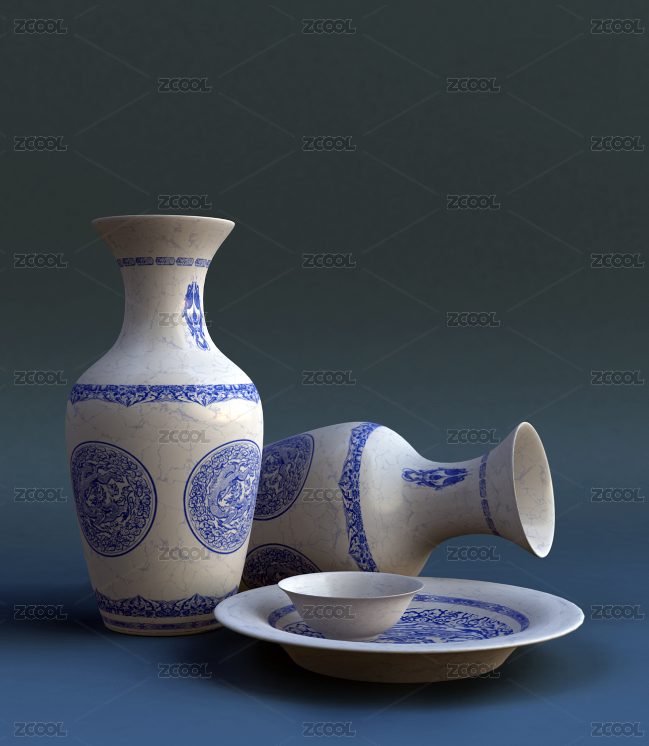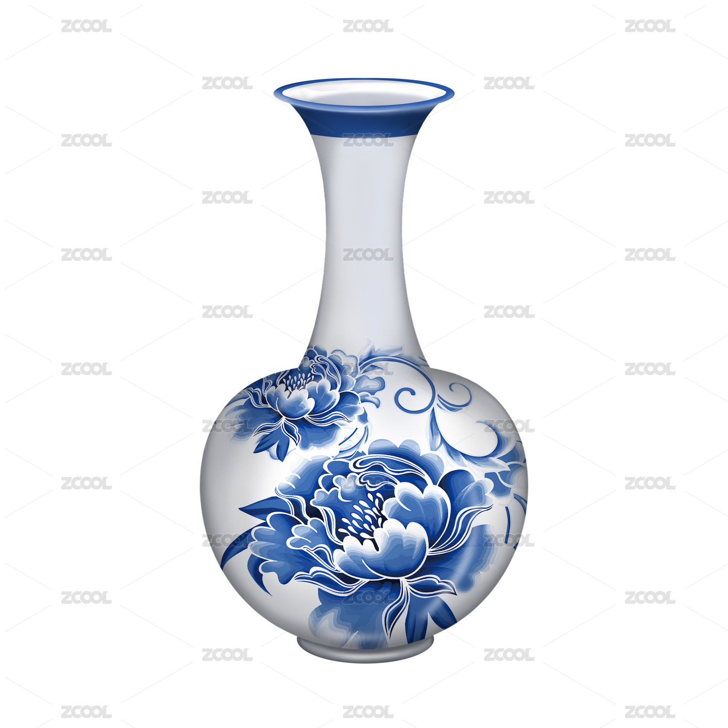3D青花瓷花瓶元素