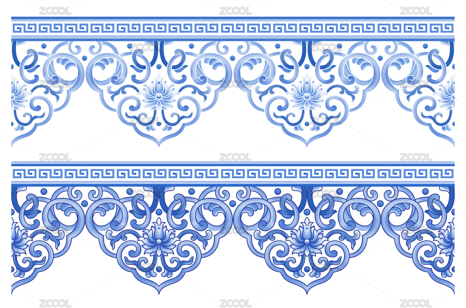 古典的青花瓷花纹图案装饰花边