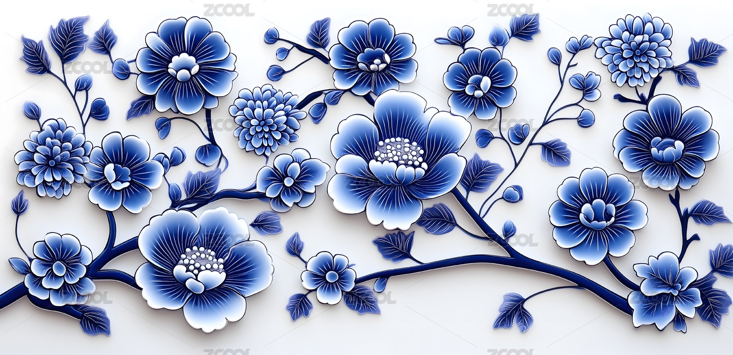 青花瓷风格花卉图案壁纸