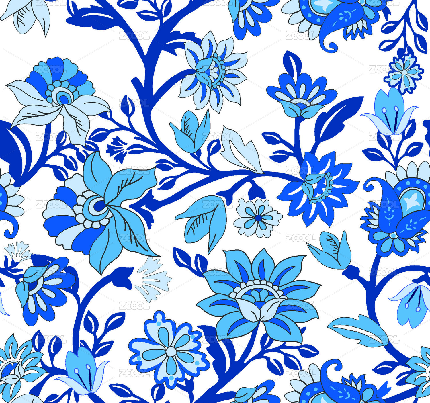 白色底青花瓷印花图案