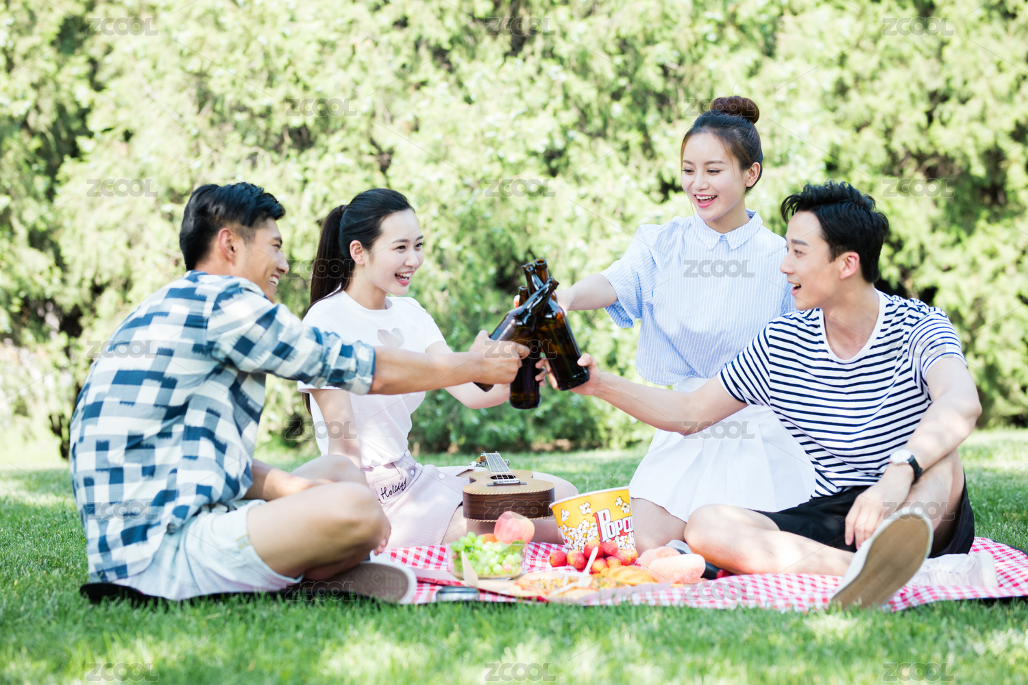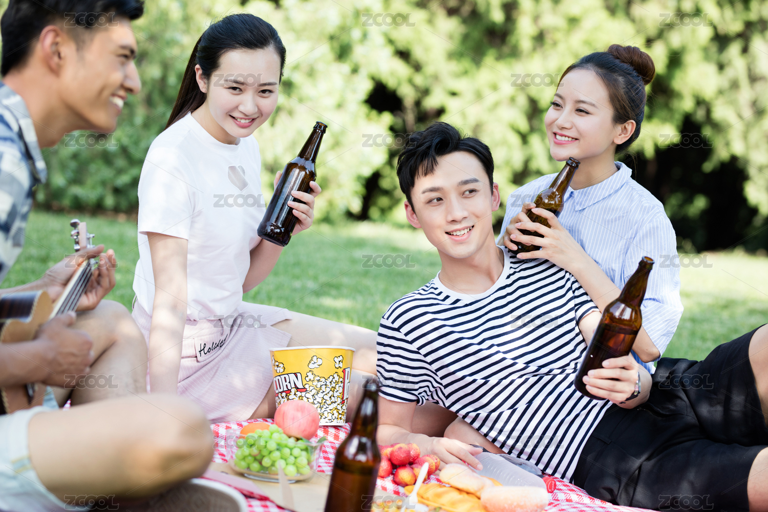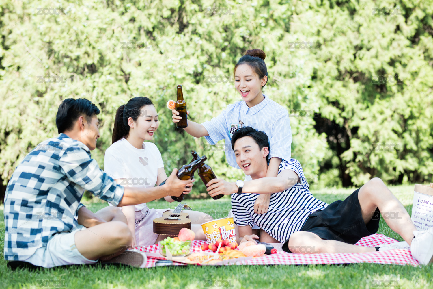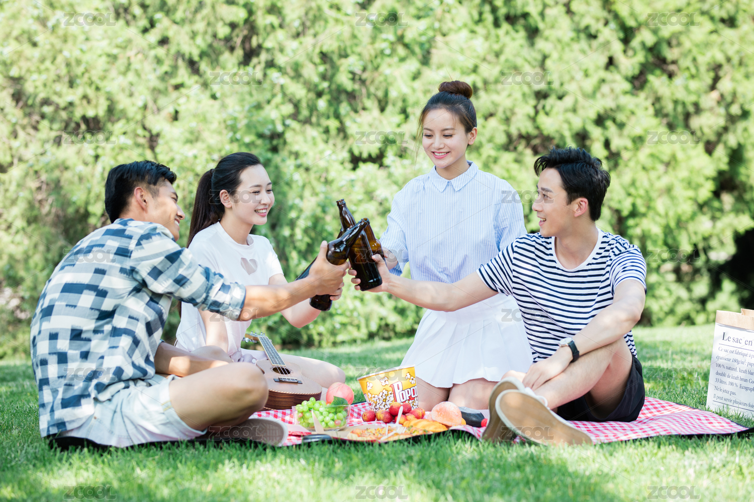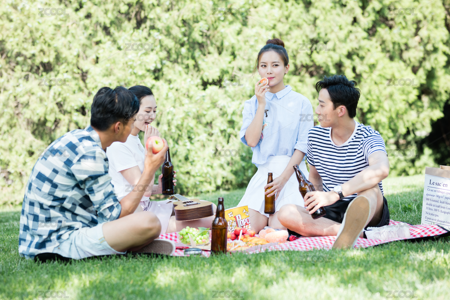 城市青年在户外野餐