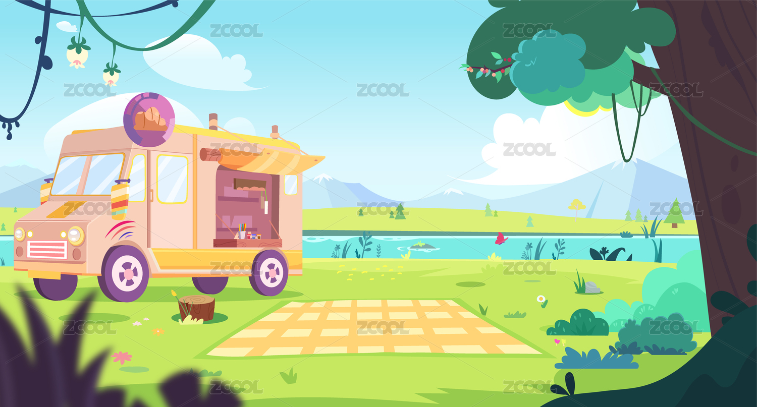 夏日野餐冰激凌餐车河边