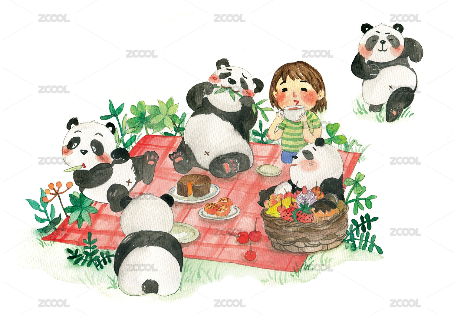 熊猫夏日野餐下午茶图