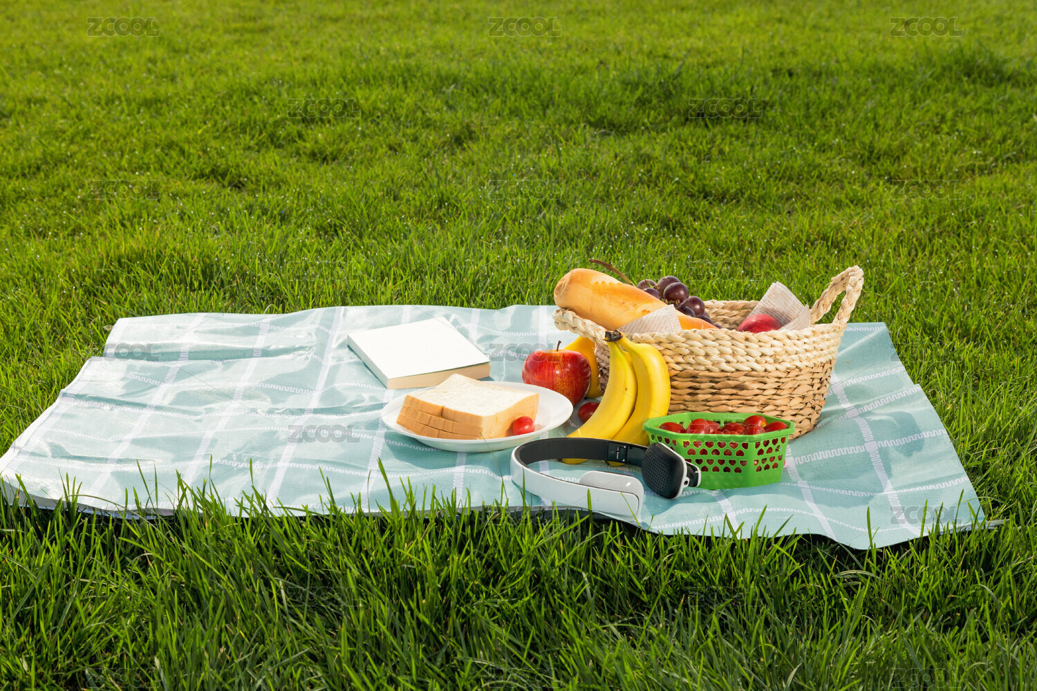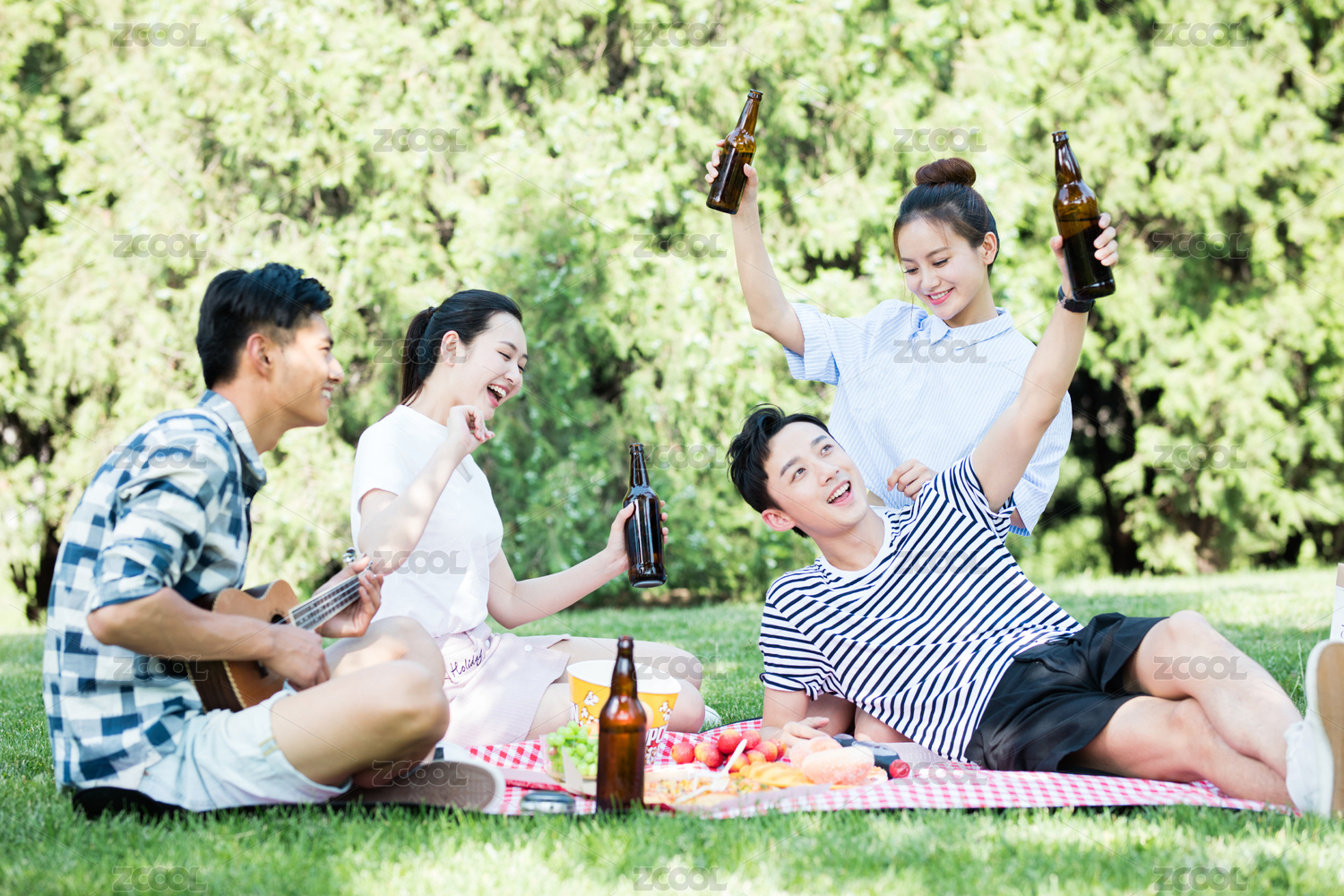 夏天,在公园草地上享受野餐