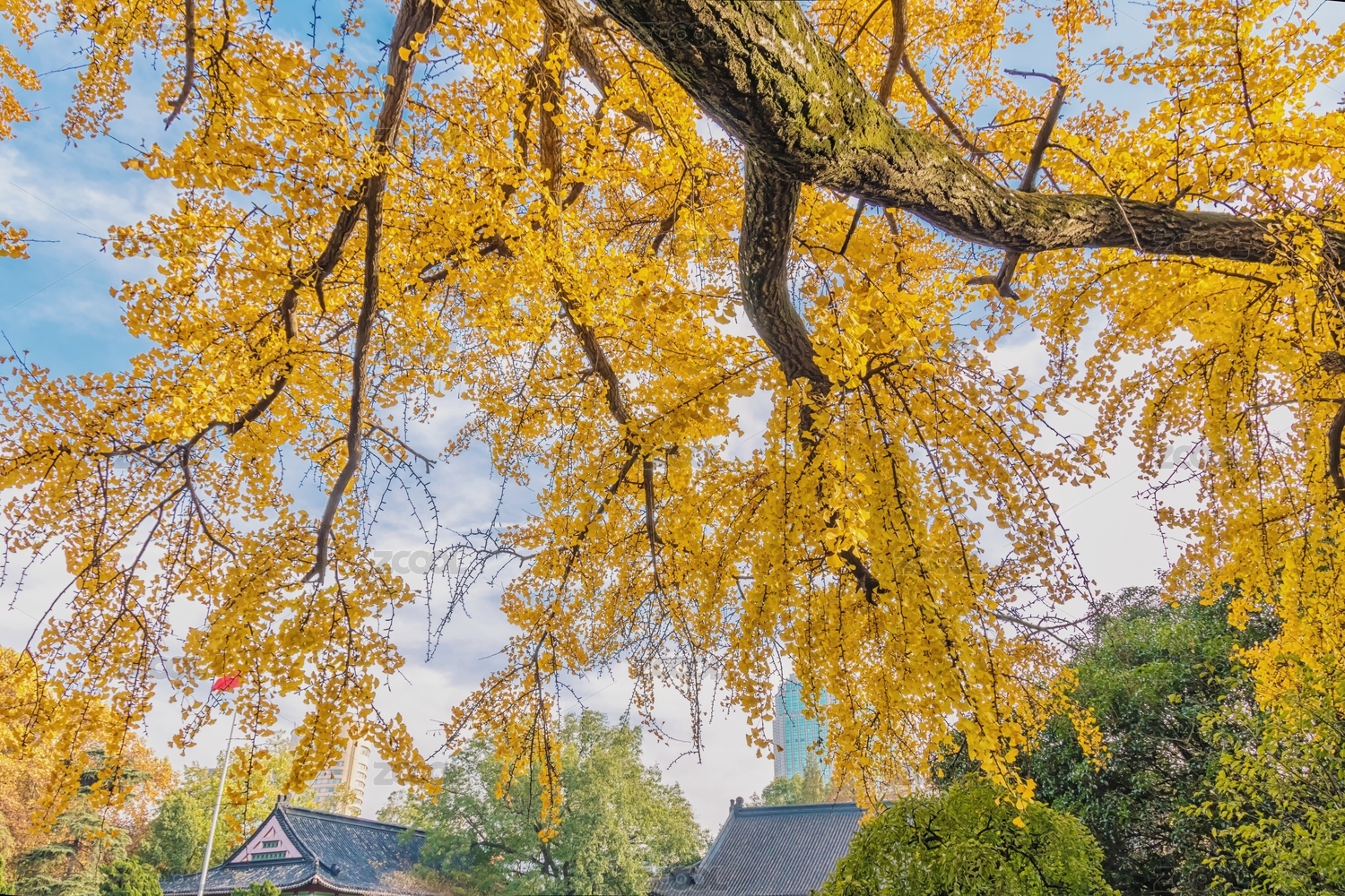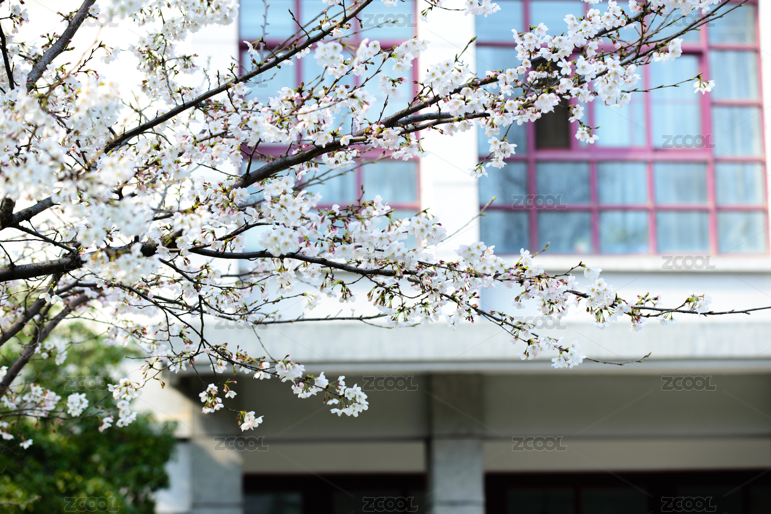 中国江苏省南京市南京林业大学樱花丛中的图书馆